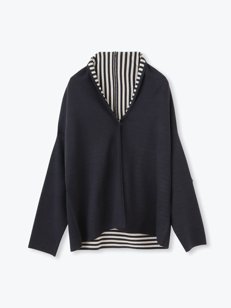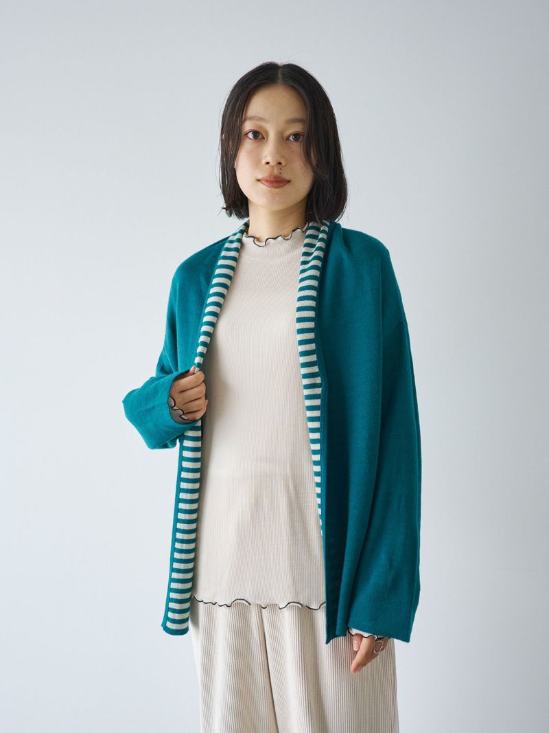 裏側のボーダー柄をさりげなく効かせたデザイン。