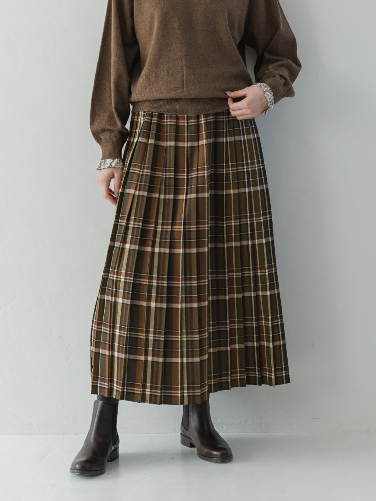 sosotto(ソソット) 千鳥柄タータン切替プリーツスカート