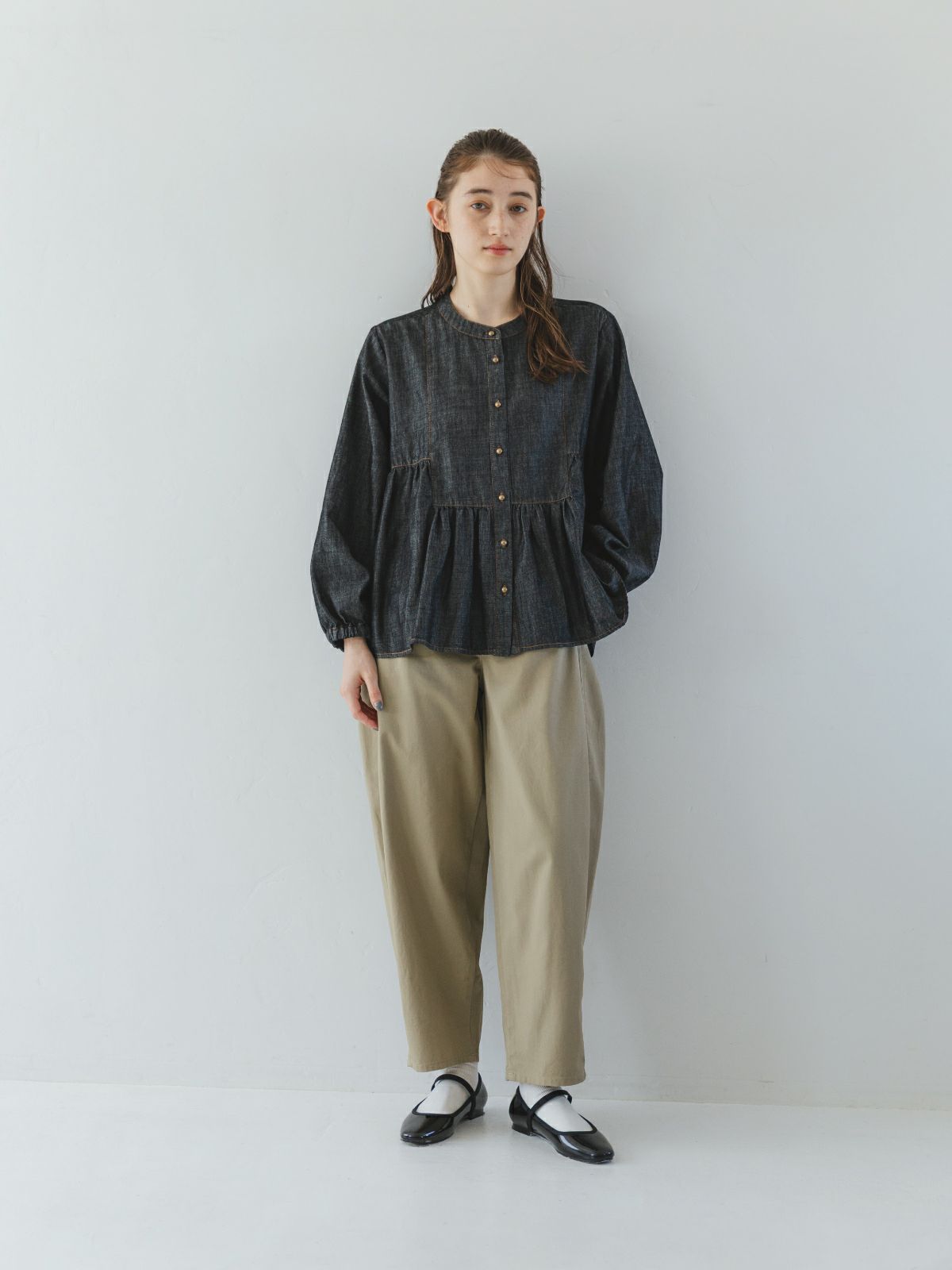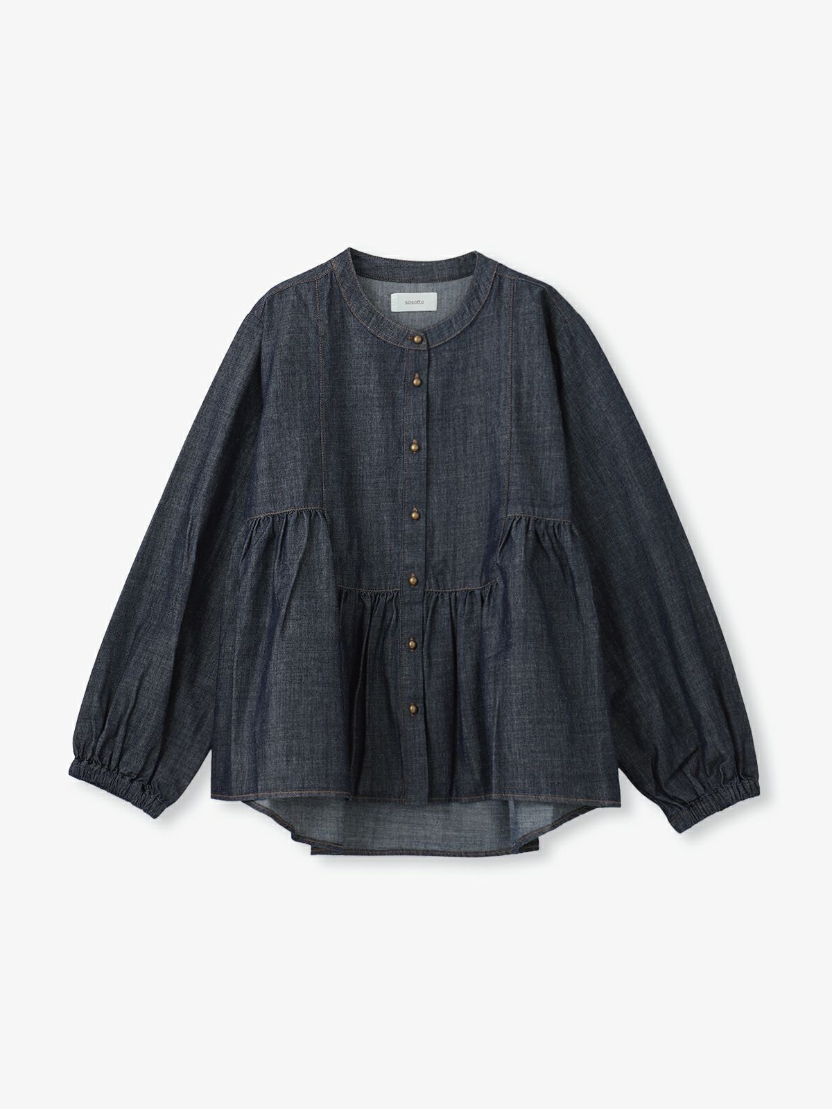 sosotto(ソソット) 【ラスト1点】6.5OZデニムヨーク切替ギャザーブラウス