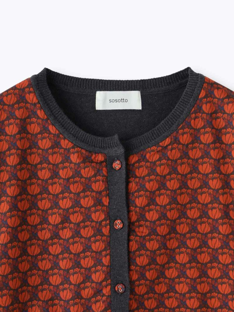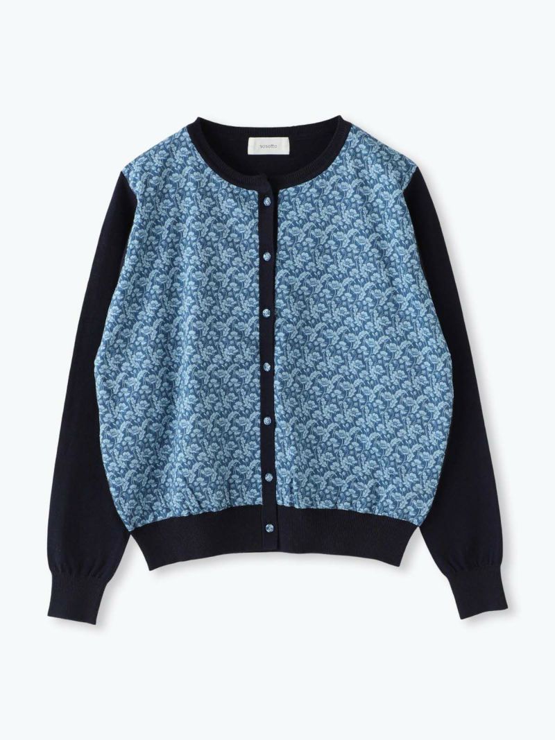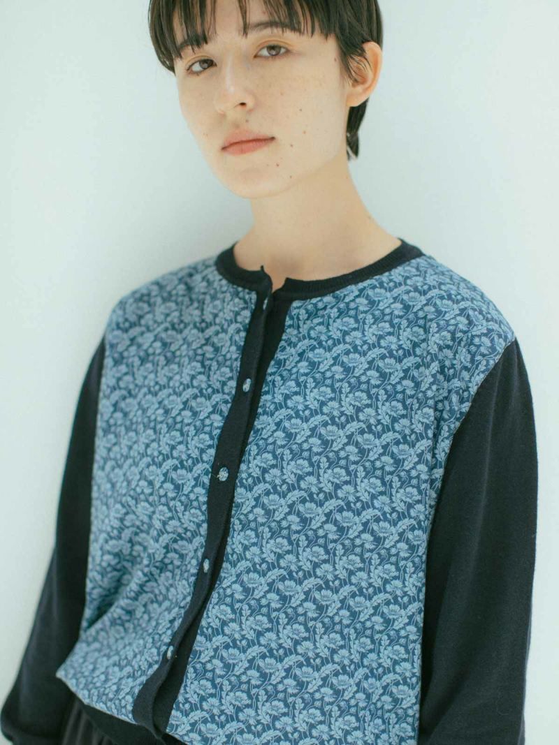 リバティとニットのドッキングカーディガン。