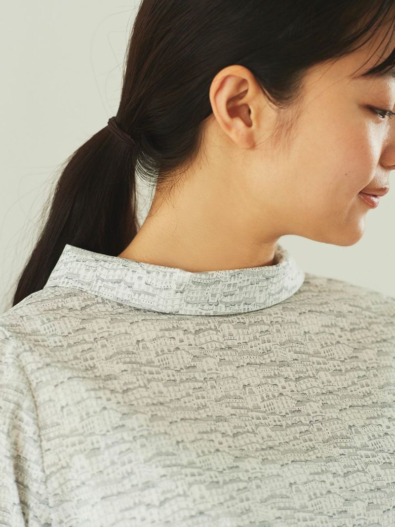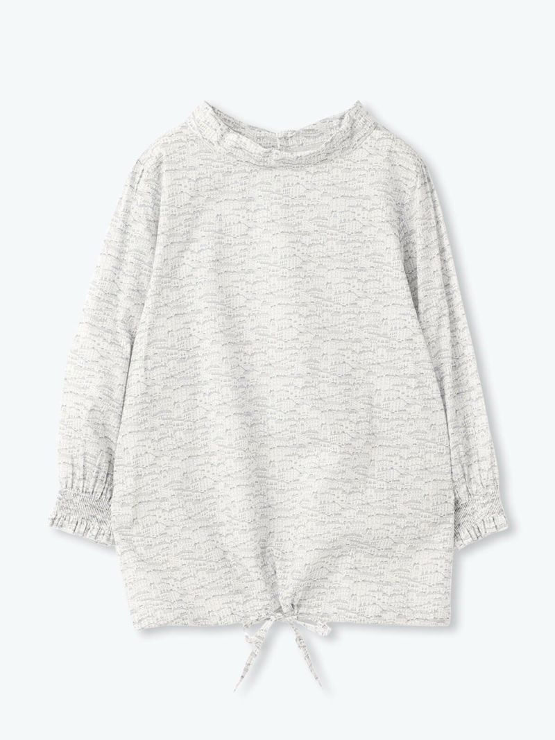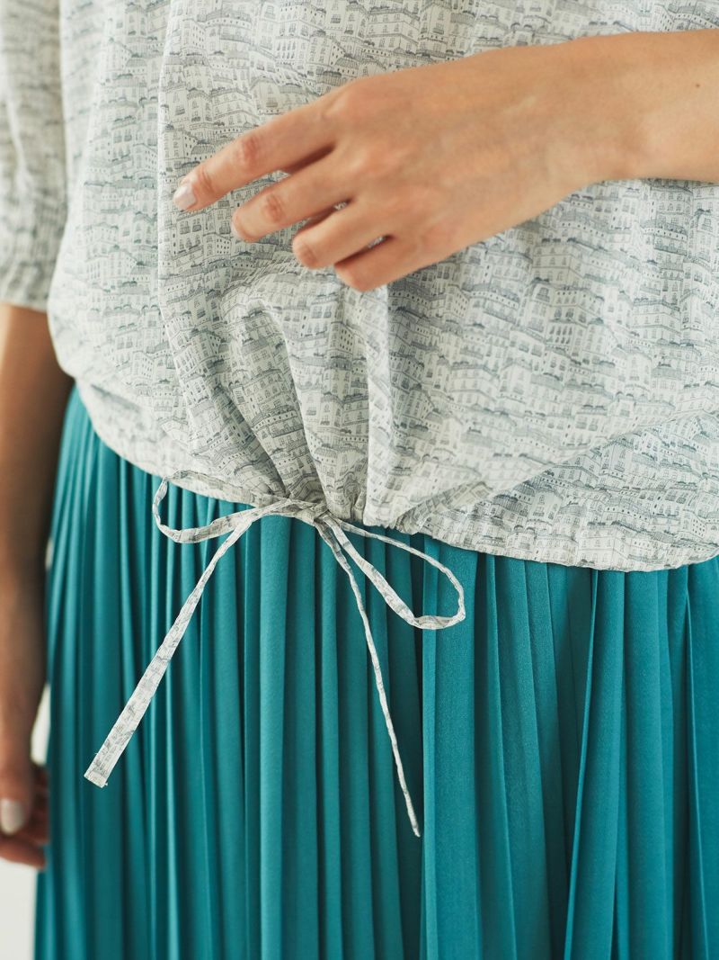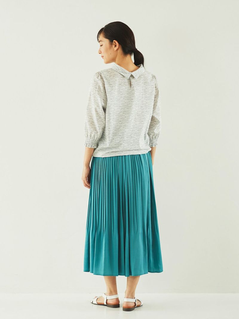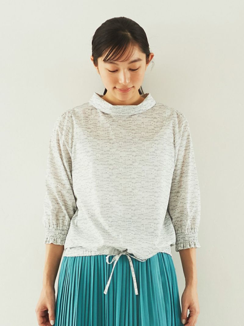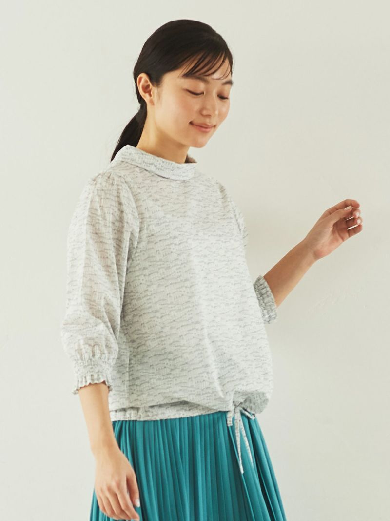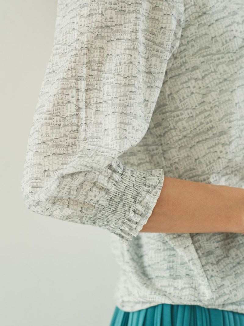 袖は7分丈のシャーリング袖で、丈調節も可能です。
