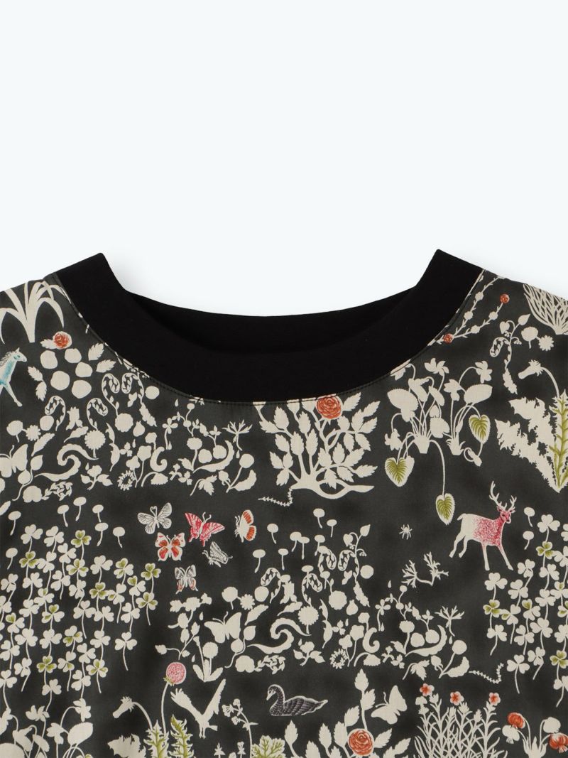 前身頃全面にリバティプリントタナローンを使用して