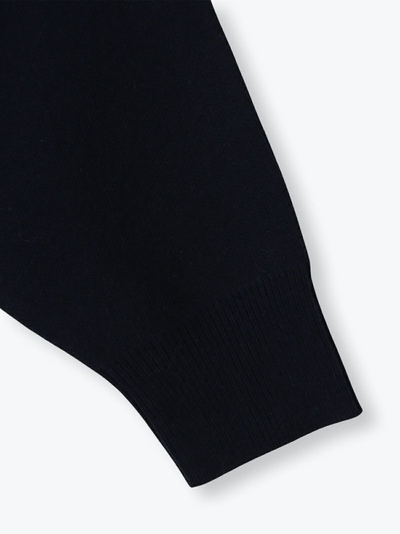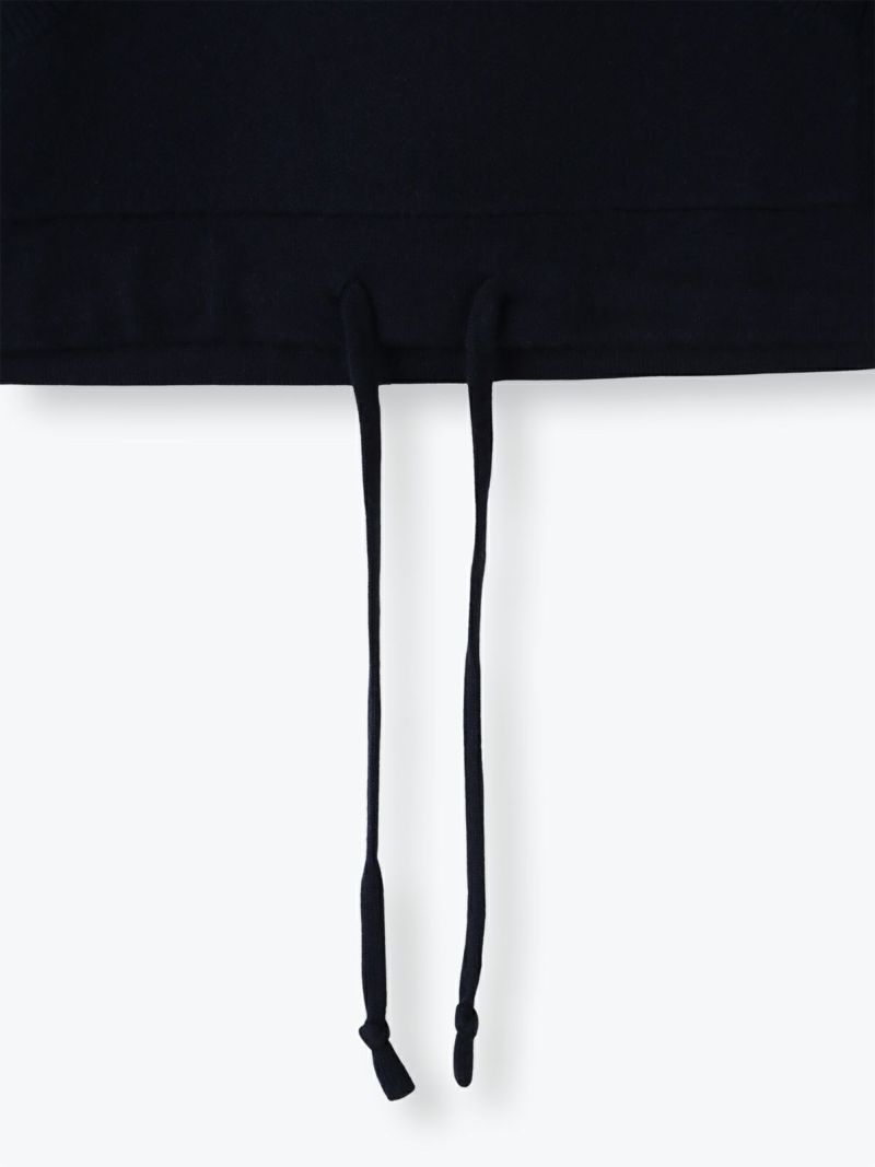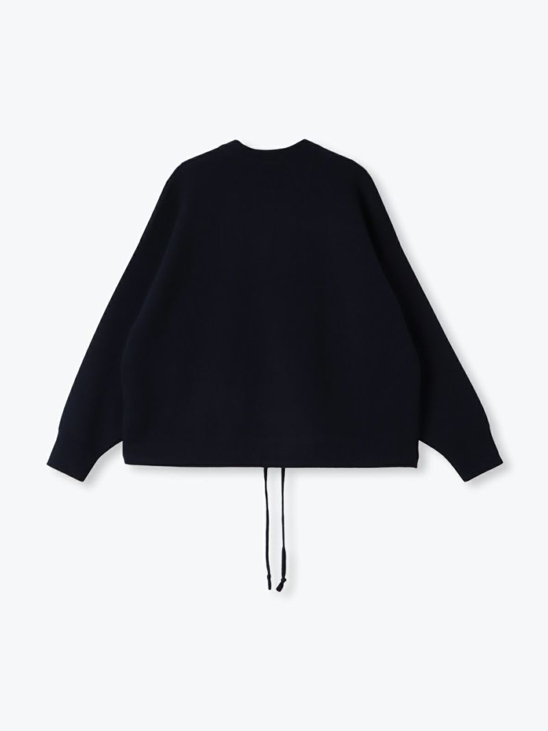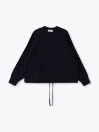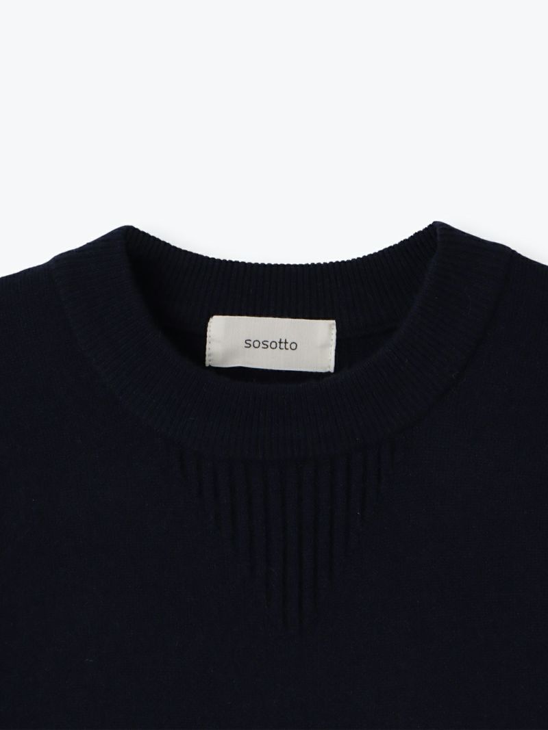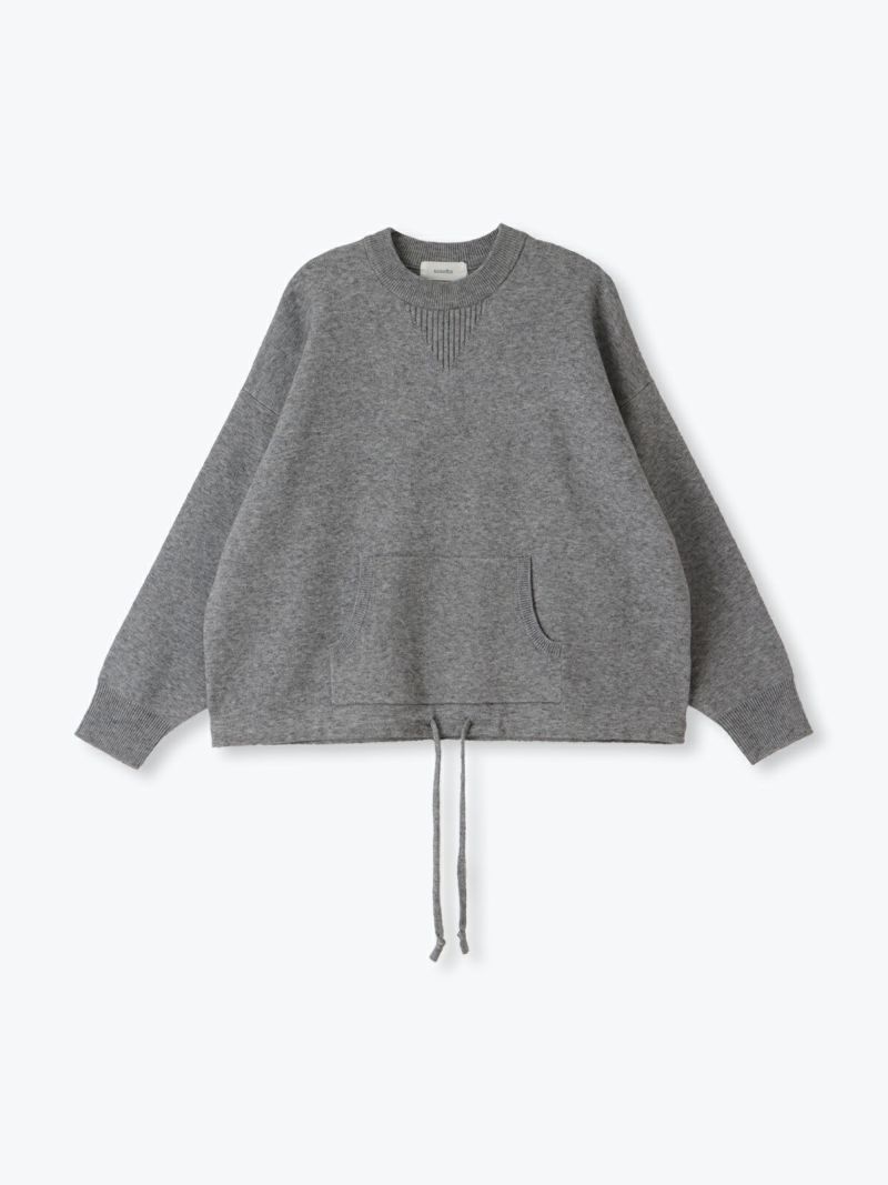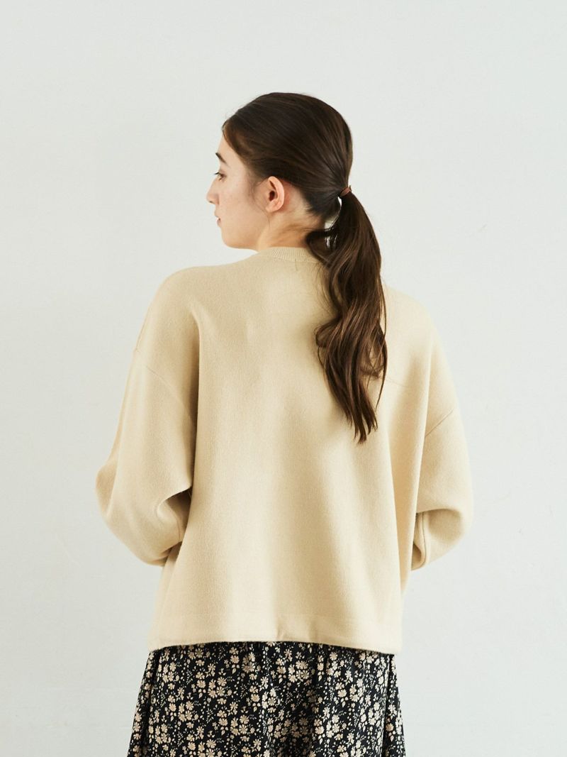 汗止めを編地変化で表現したスエット風ニットは、