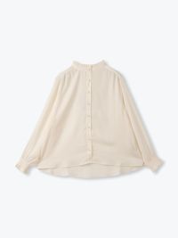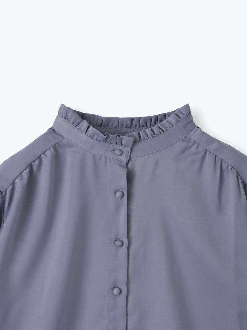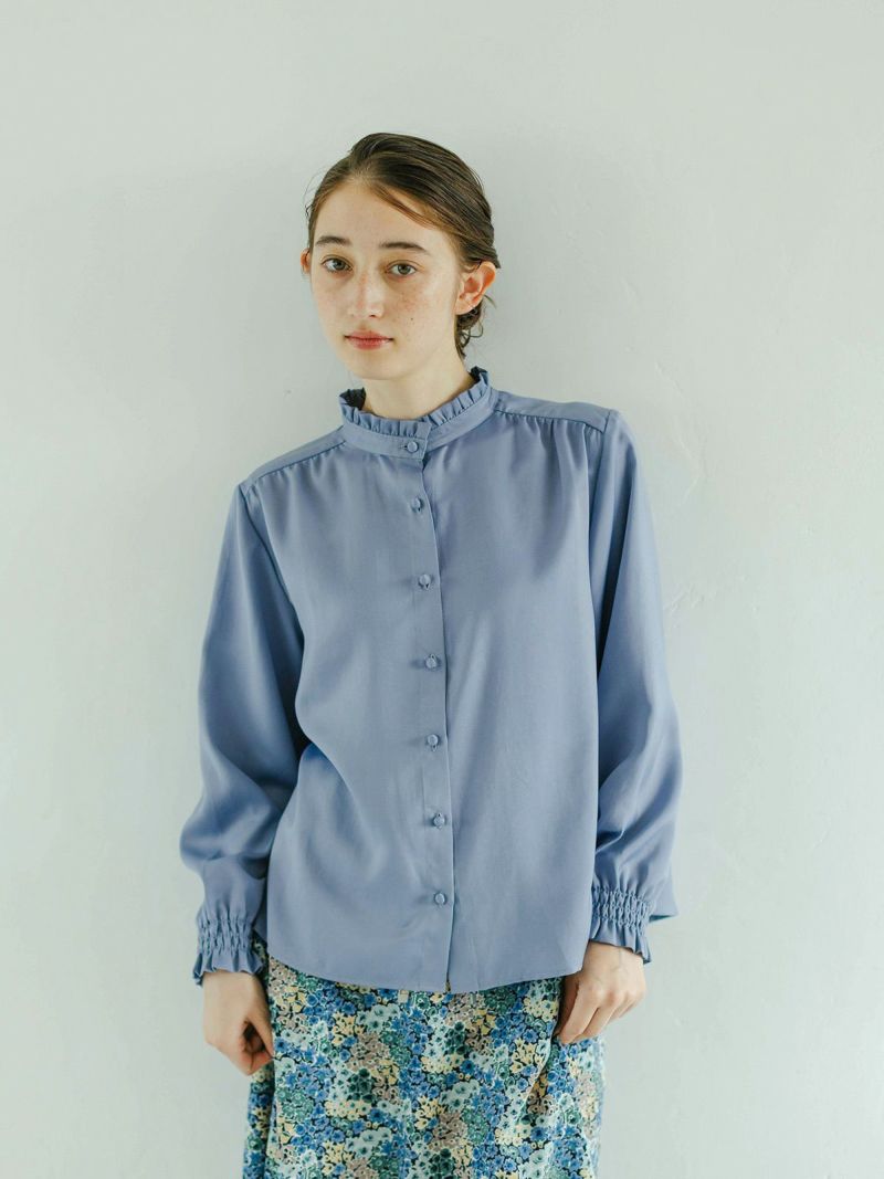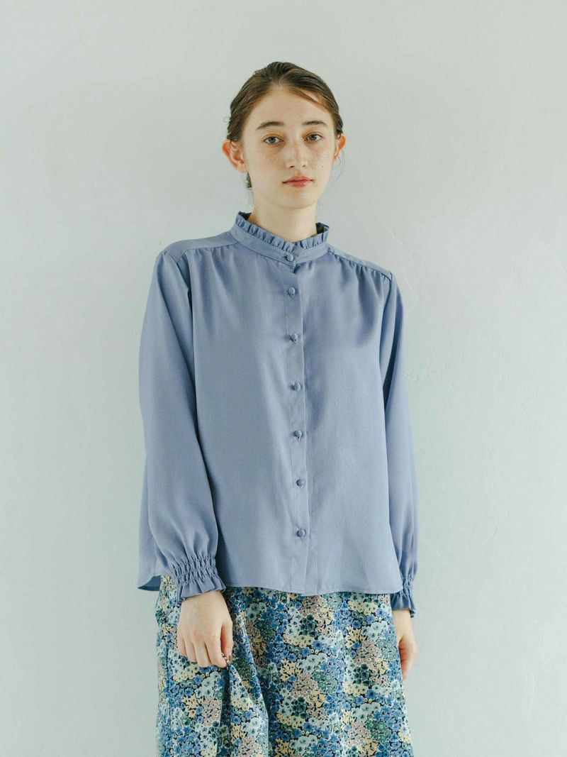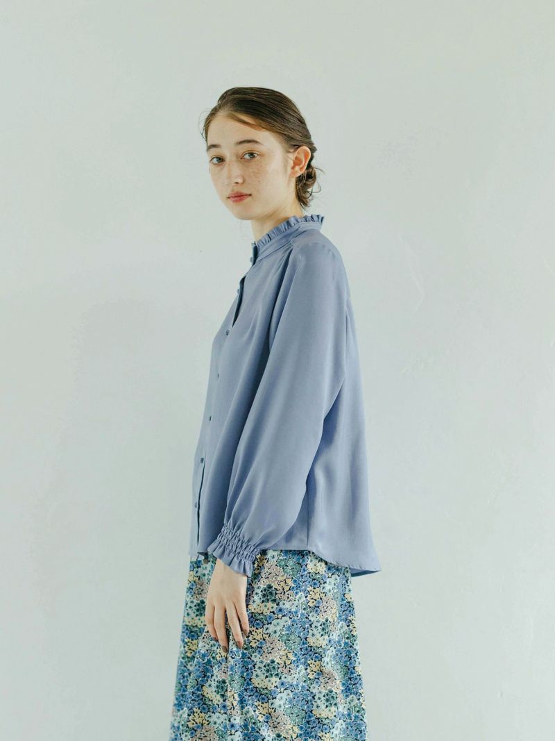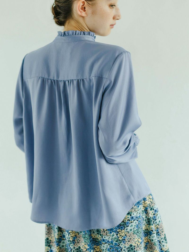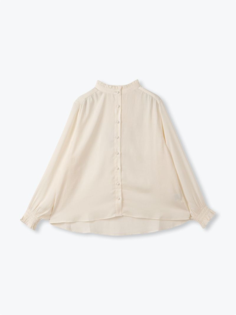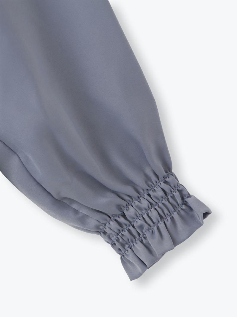 前後にいれたギャザーとシャーリングゴムの袖口、