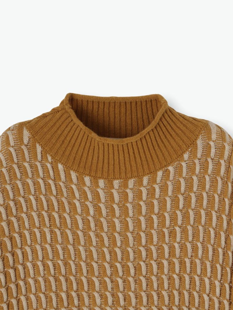 前身頃に入った配色の立体的なケーブルが派手過ぎず、