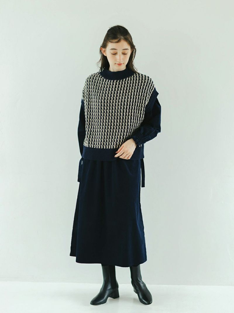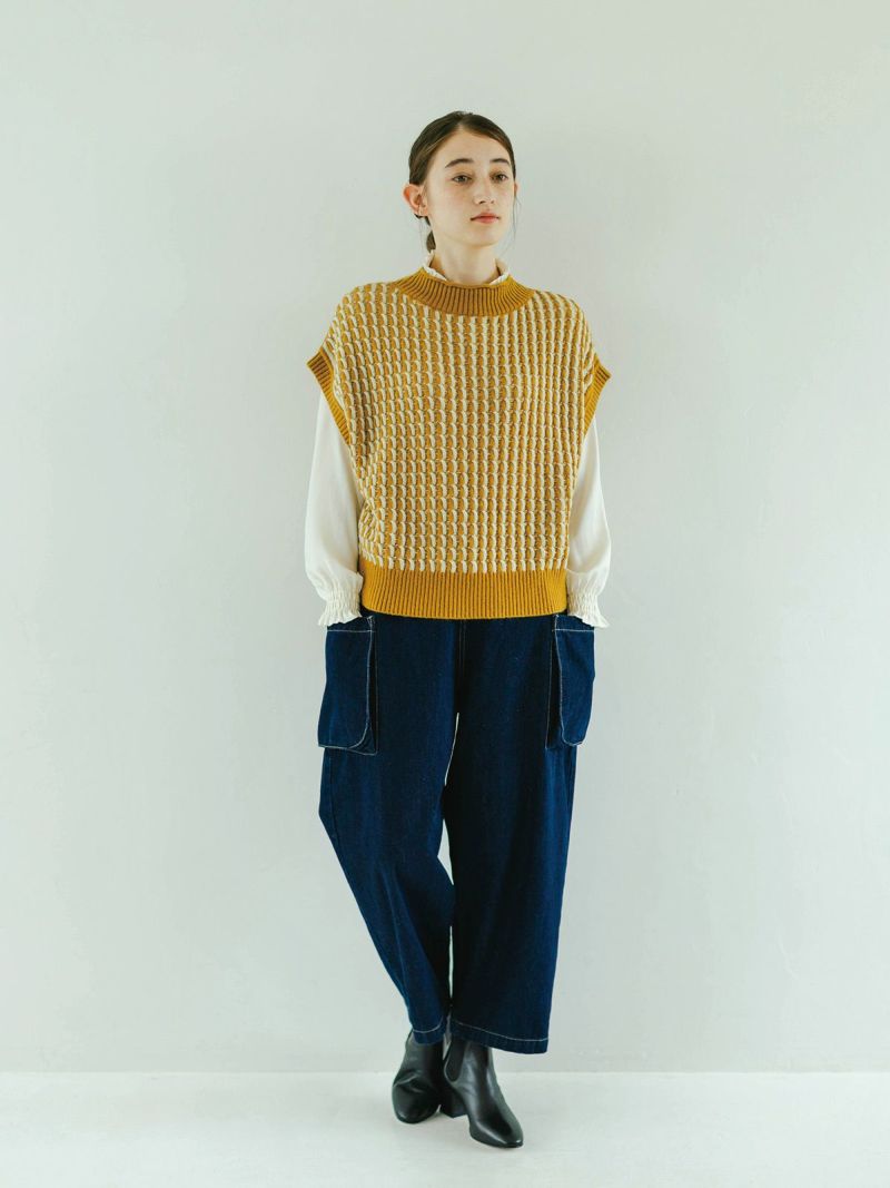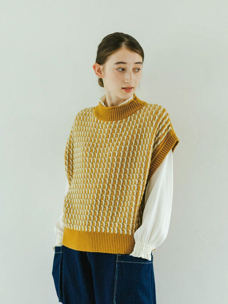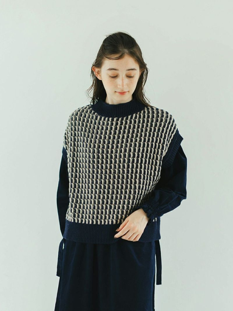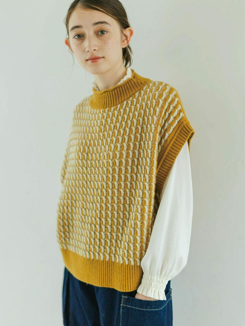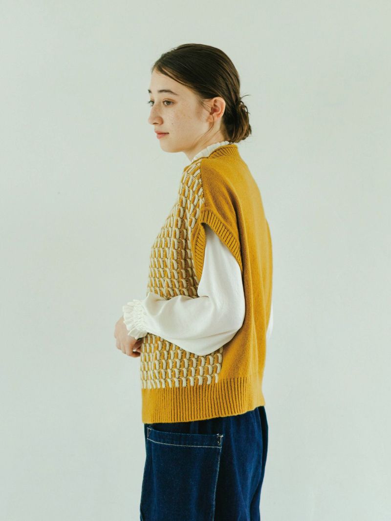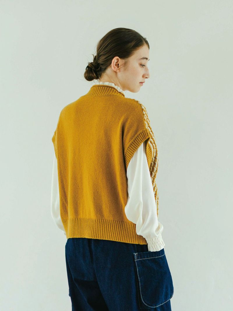 チクチクしない柔らかなラムウール混の糸を使用したベスト。