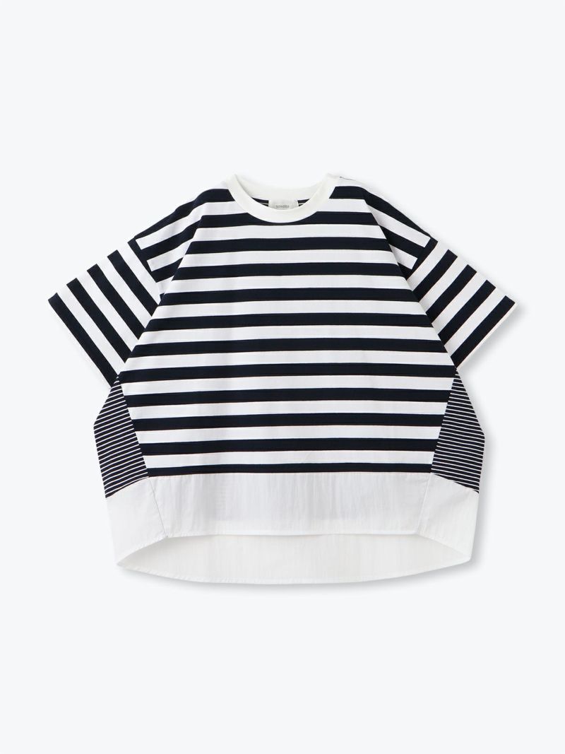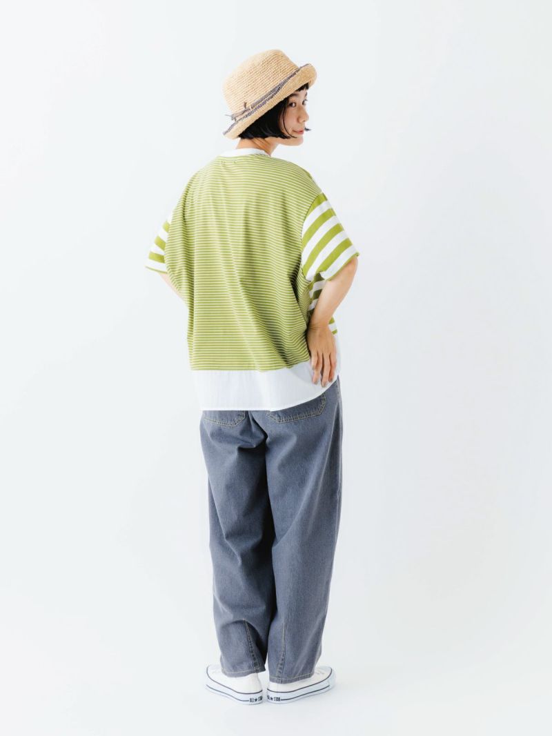 開きの少ないベーシックなクルーネックのボーダーカットソーです。