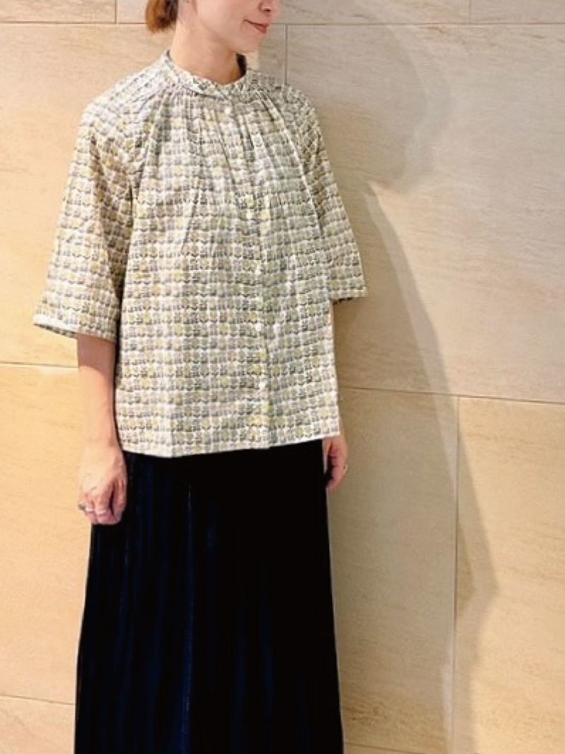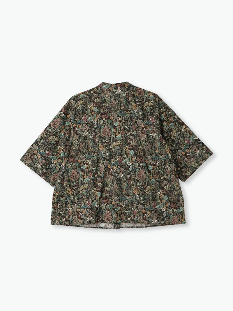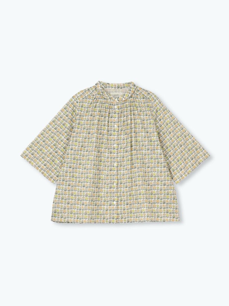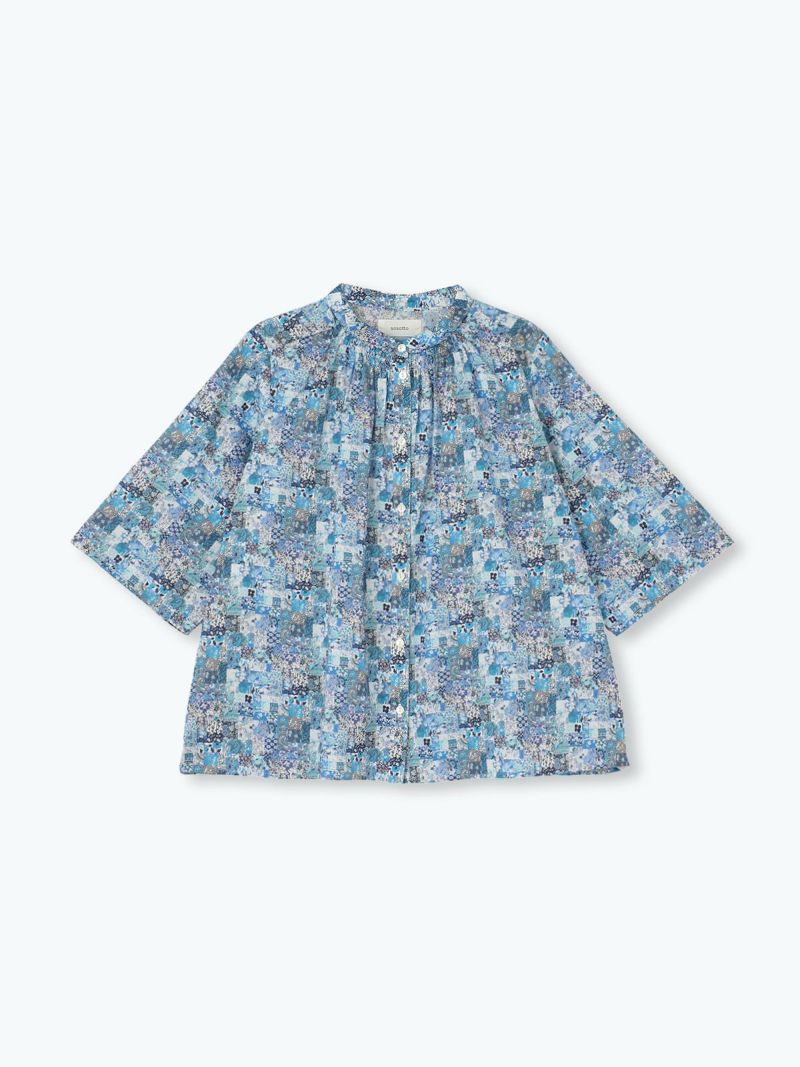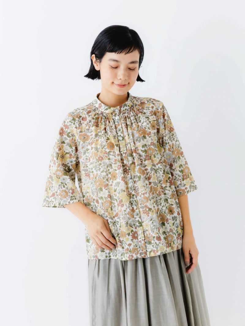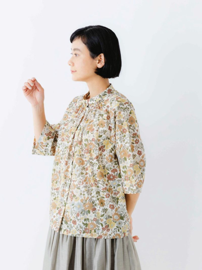 LIBERTYPRINTチビ丸衿ゴムシャーリングブラウス6分袖