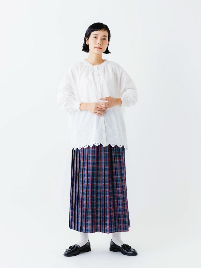 ボビー刺繍裾スカラップゴムギャザーブラウス