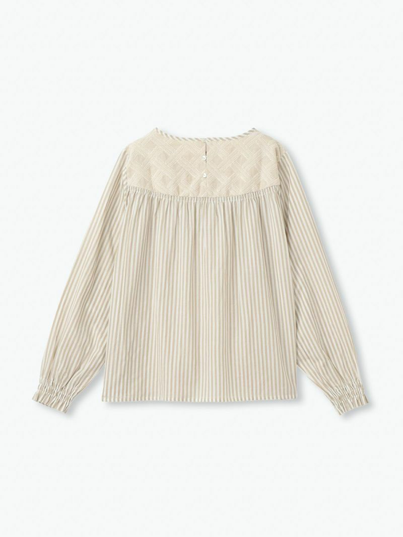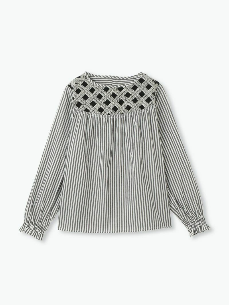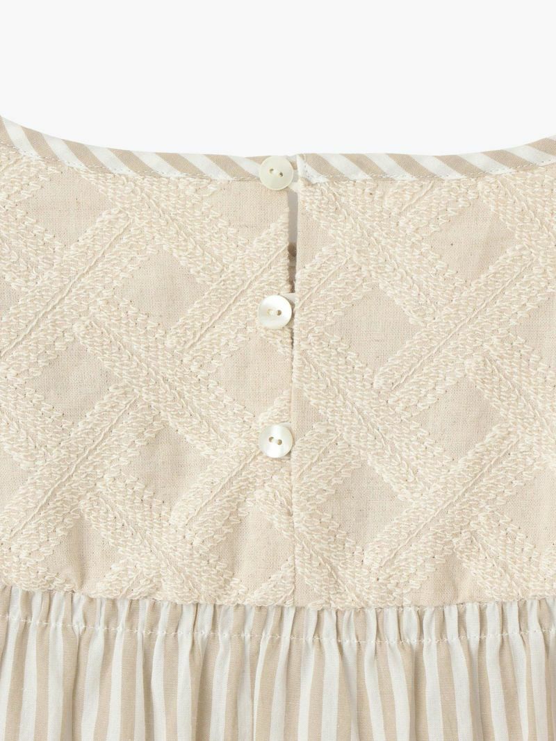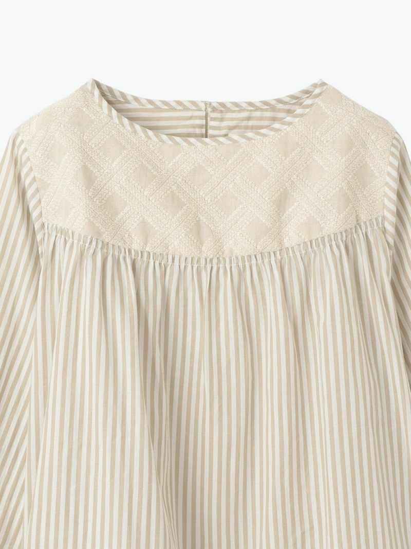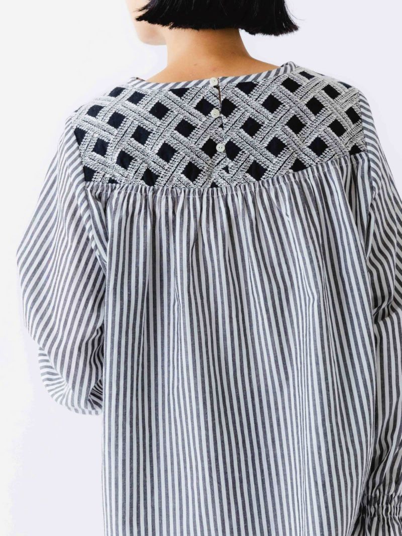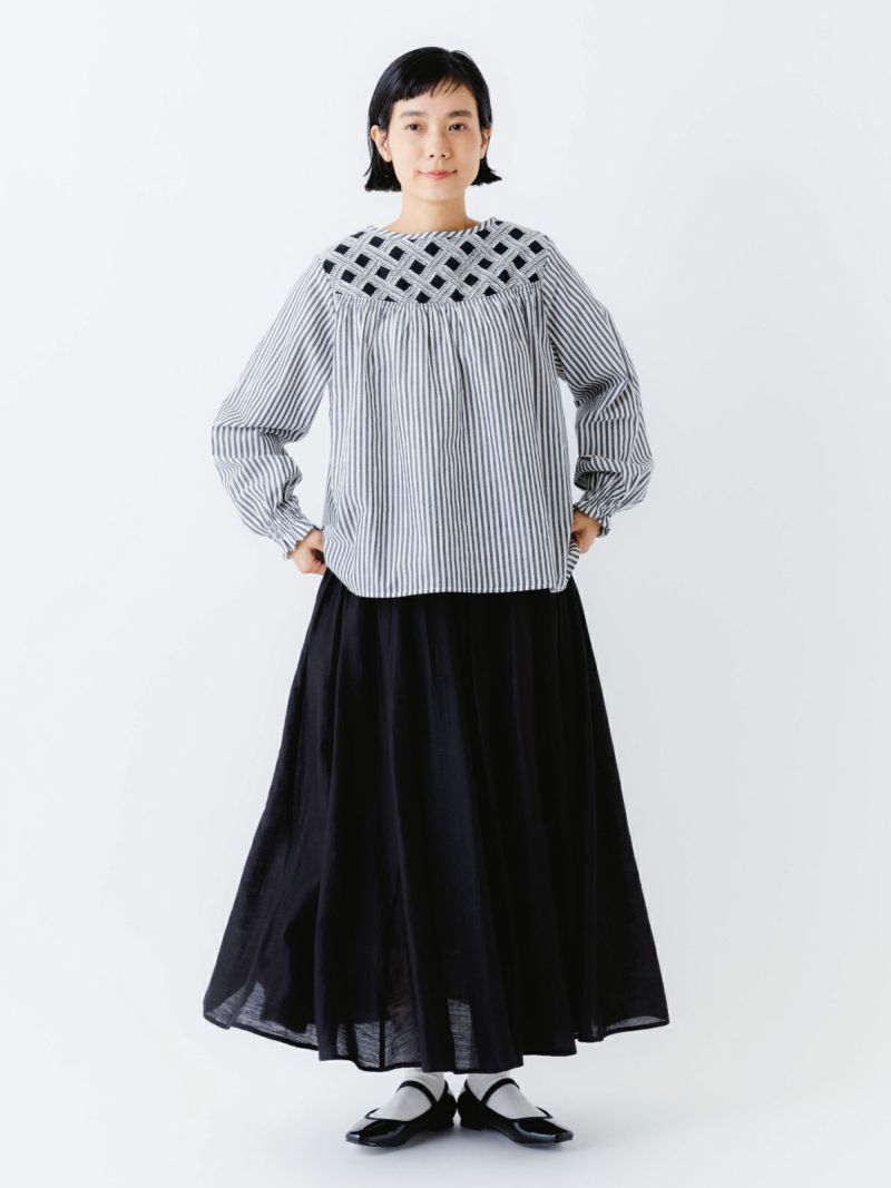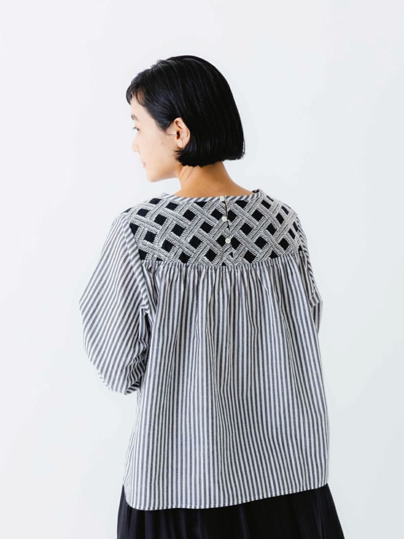 印象的な格子の刺繍生地をぐるりとヨーク部分で切替えました。