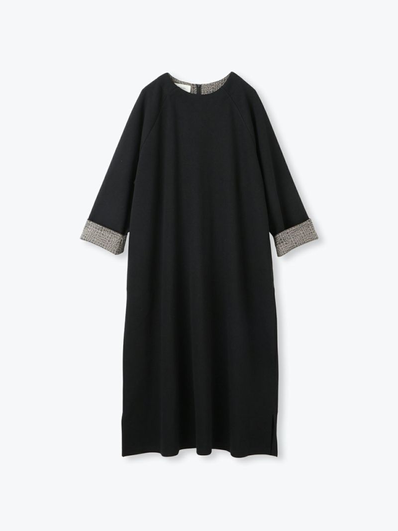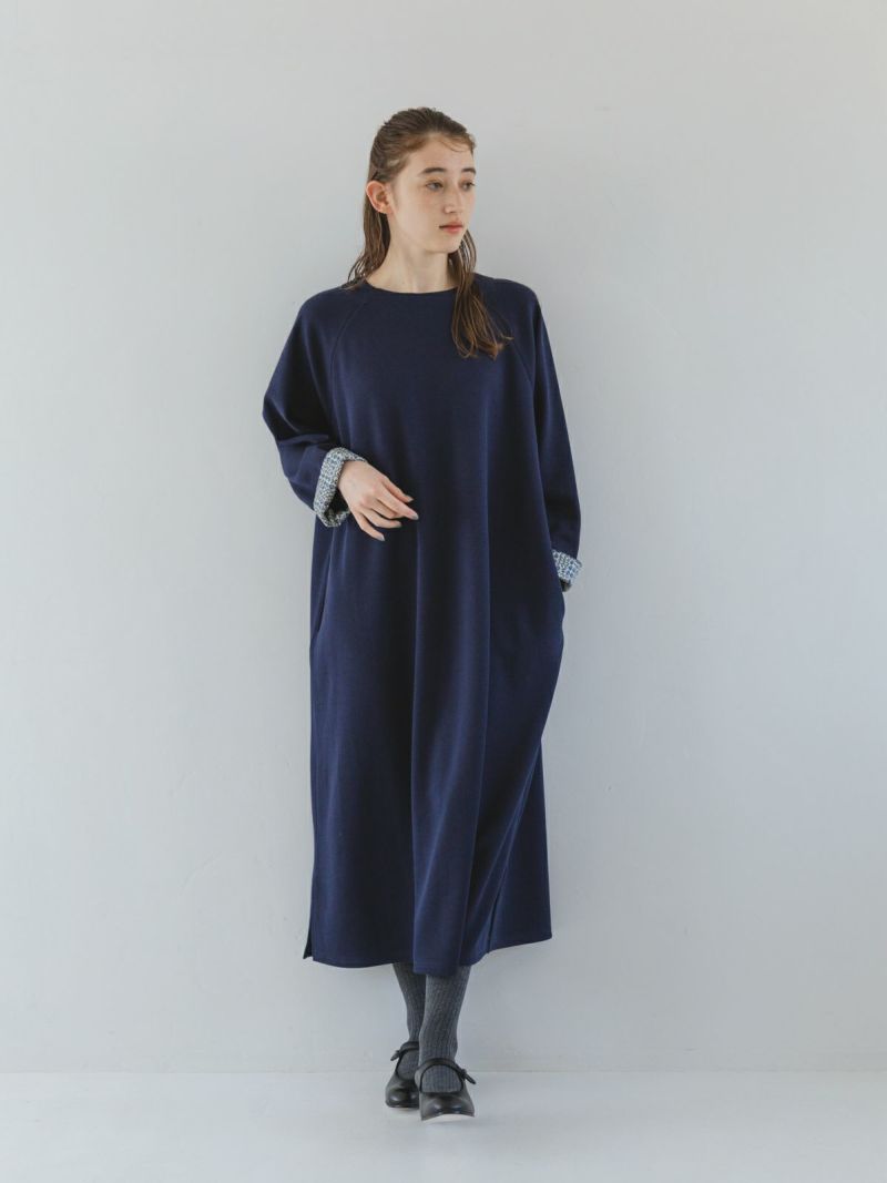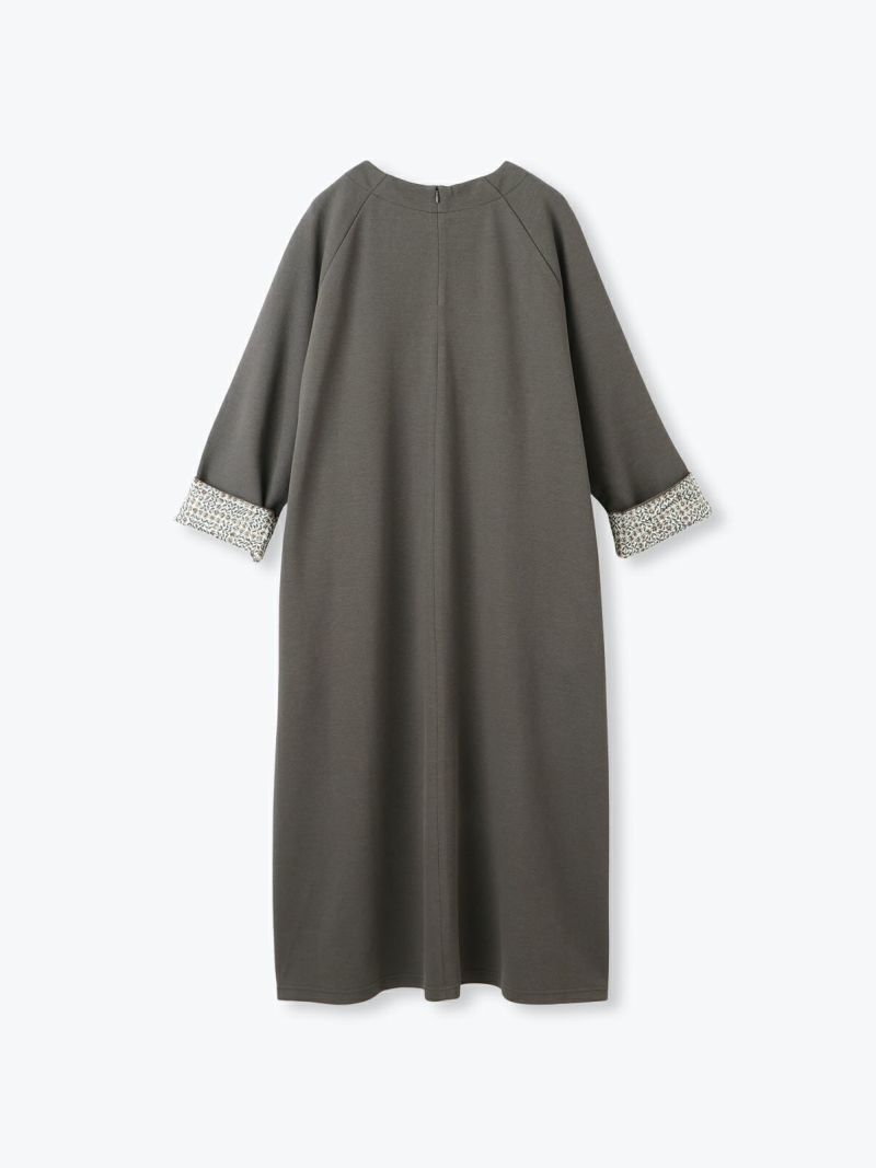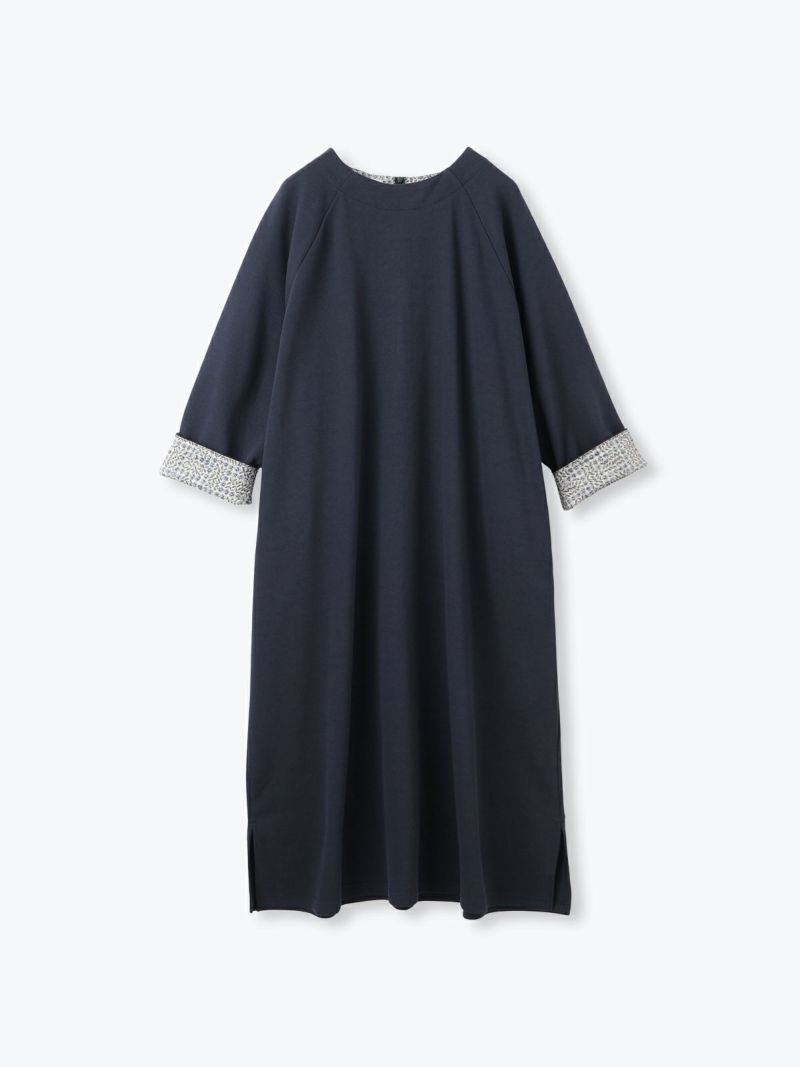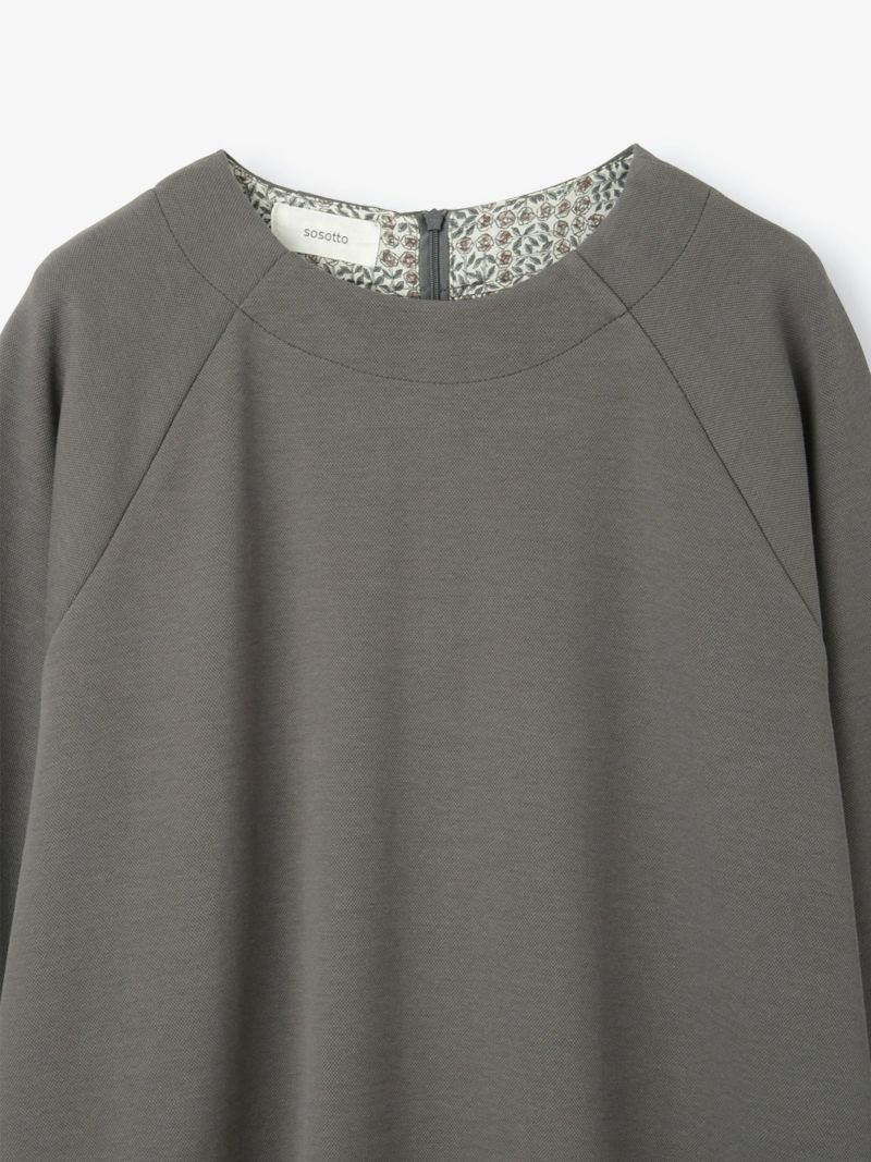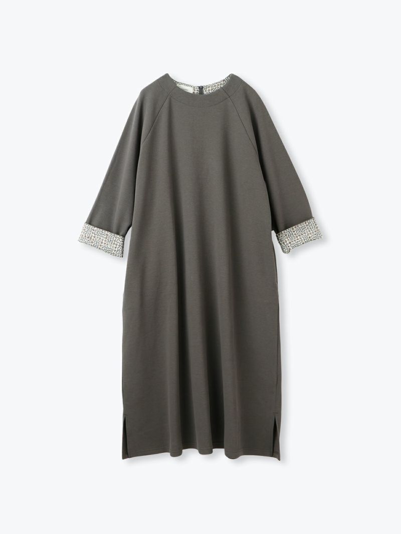 シンプルな無地のワンピースですが袖裏にsosotto別注カラーのSleepingRoseを