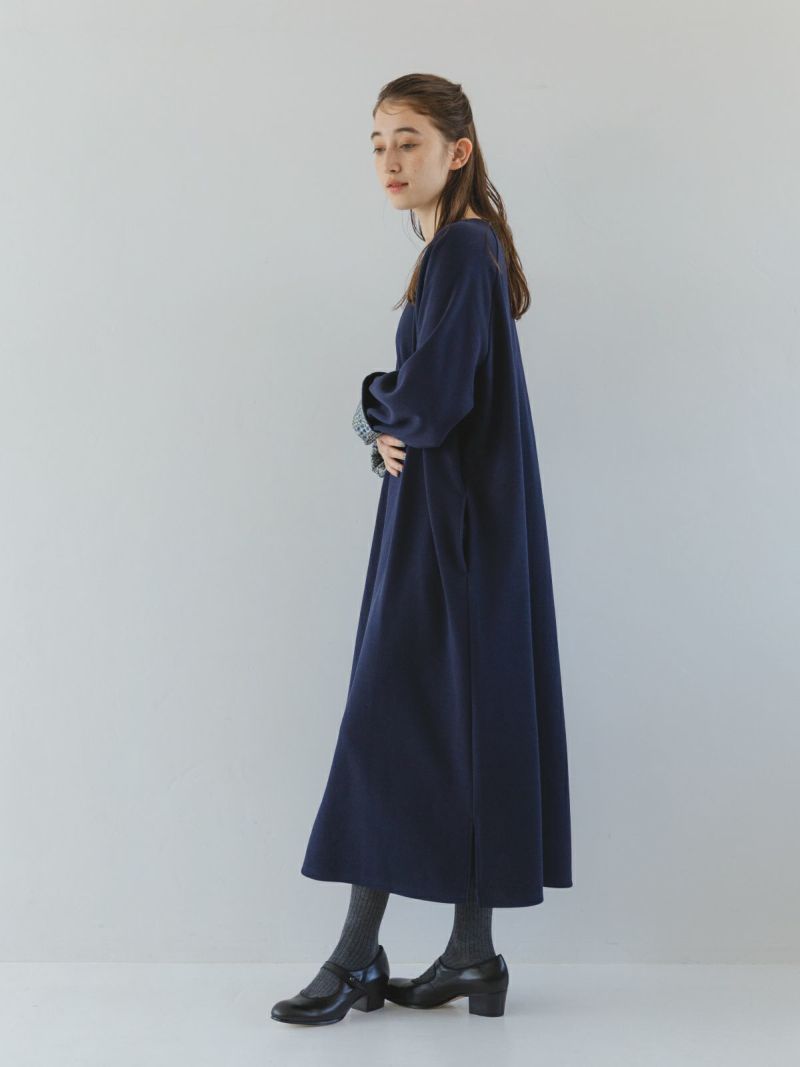 インにブラウスを合わせて上品な着こなしでも使い勝手の良いワンピースです。