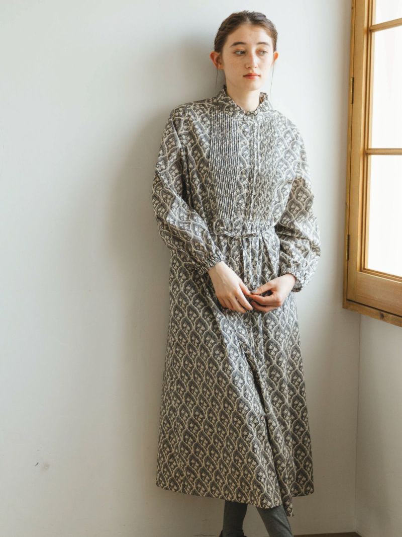 フロントに細かなピンタックをあしらった贅沢なワンピース。
