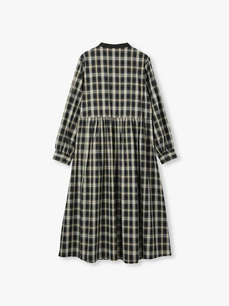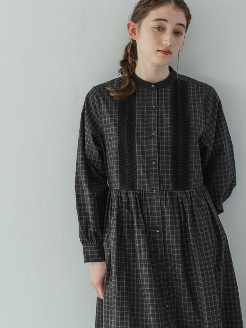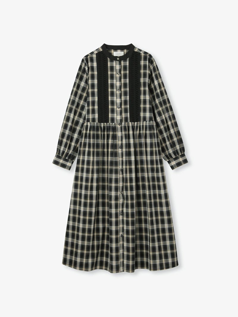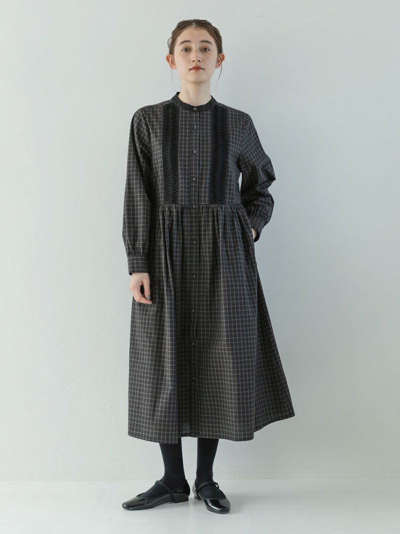 コットンの秋らしいモノトーン系チェック3種を使用したワンピース。