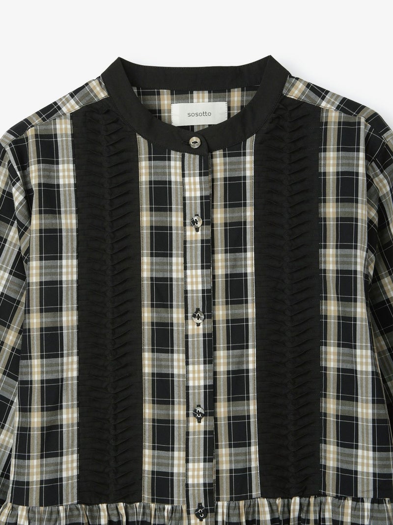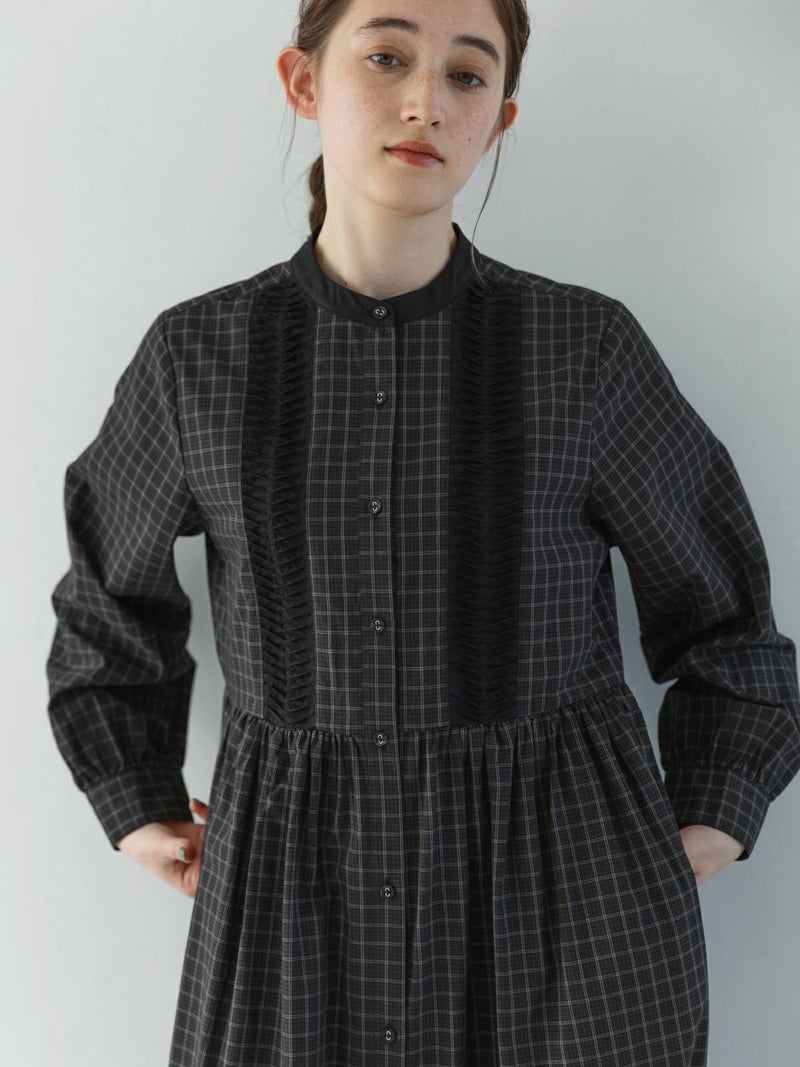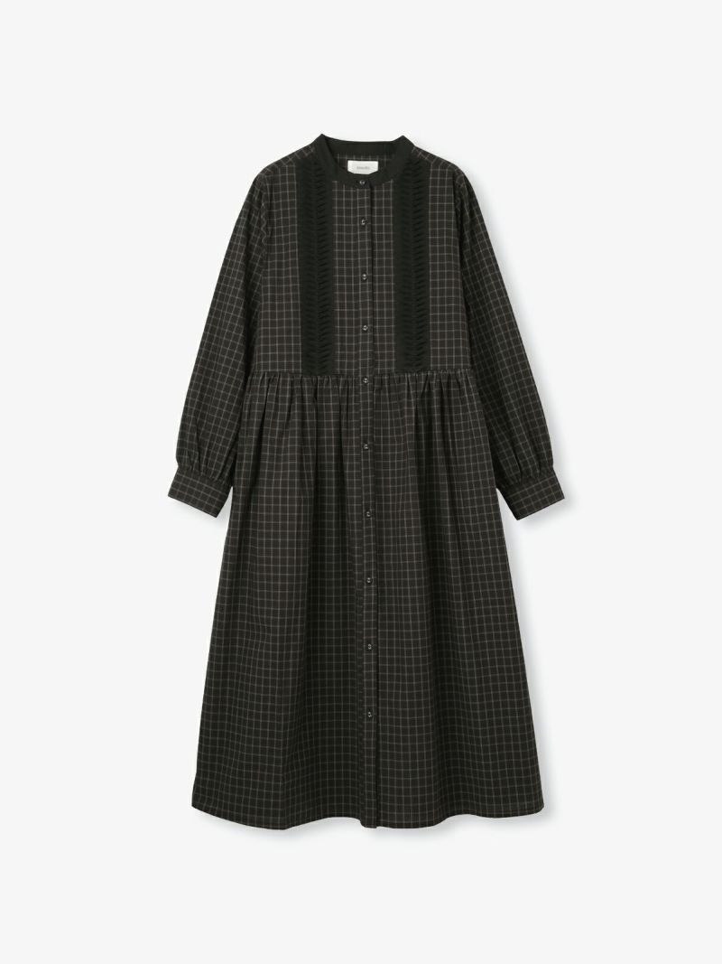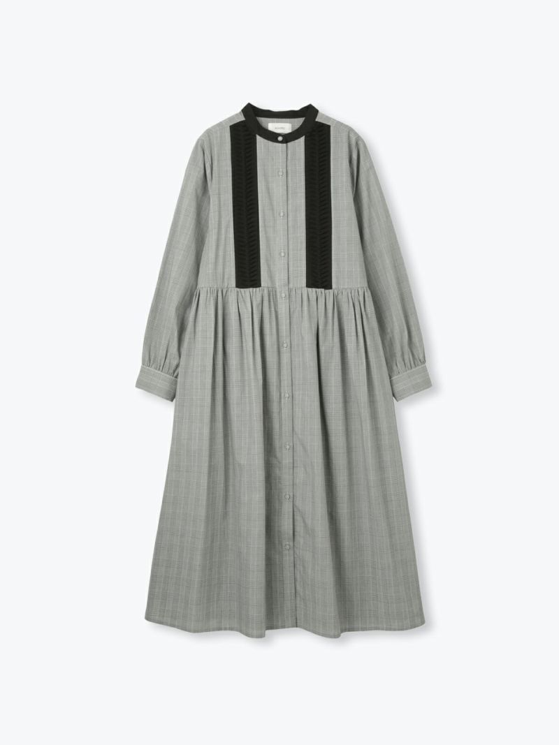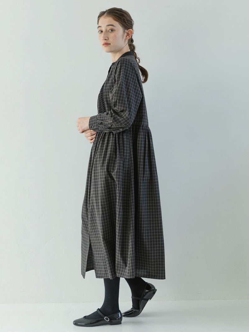 コットンの秋らしいモノトーン系チェック3種を使用したワンピース。