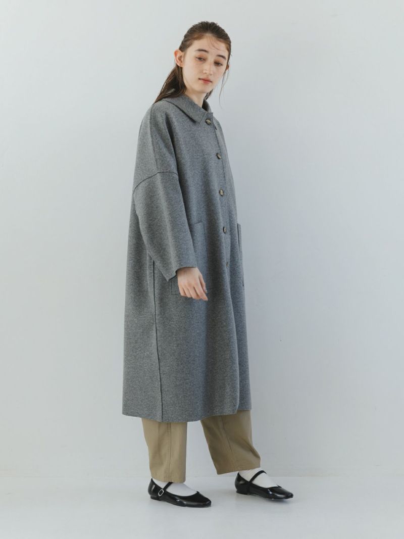 ダブルフェイス生地をたっぷりと使いステンカラーの