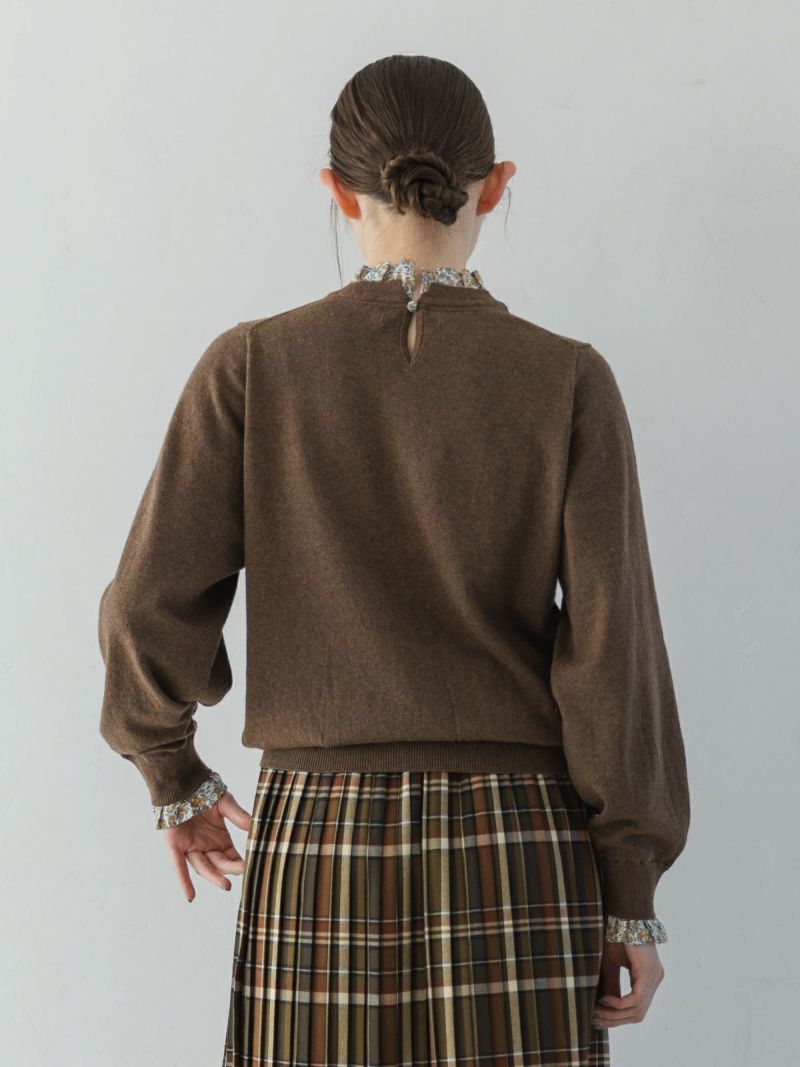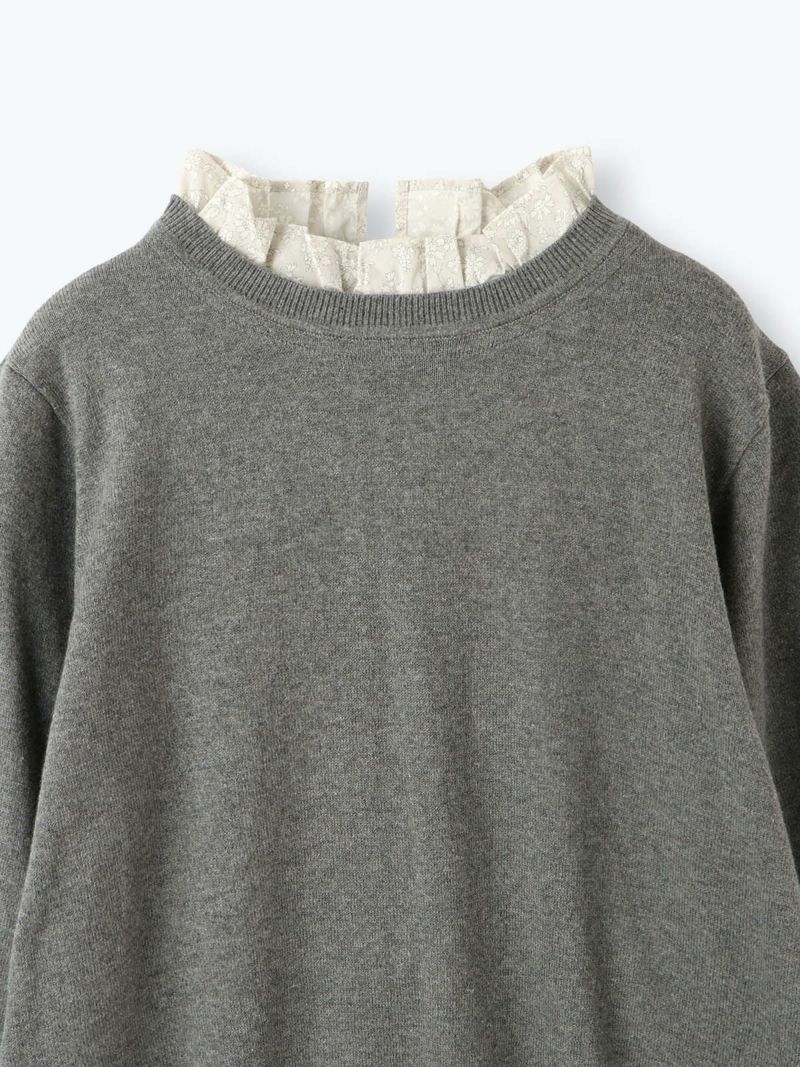 重ねたように衿周りと袖口にフリルをドッキングしました。