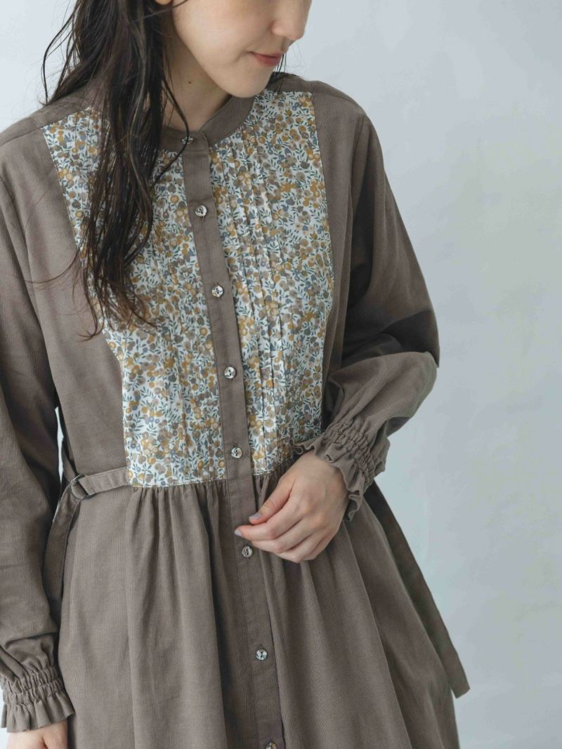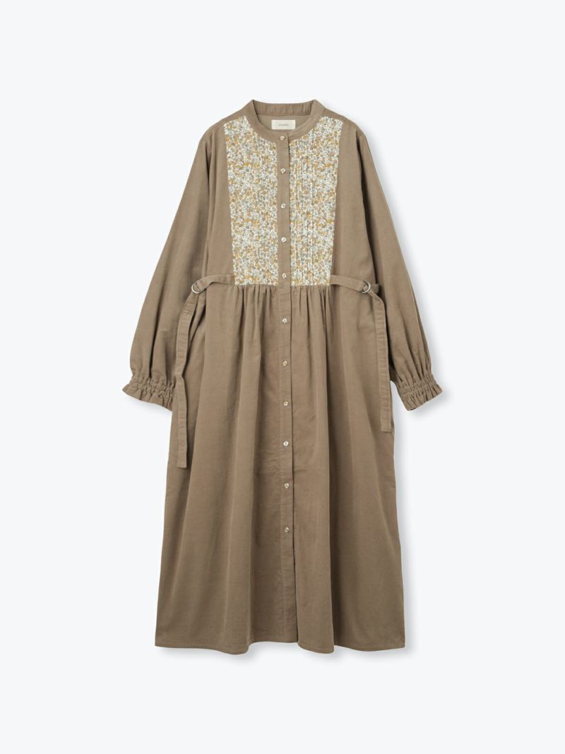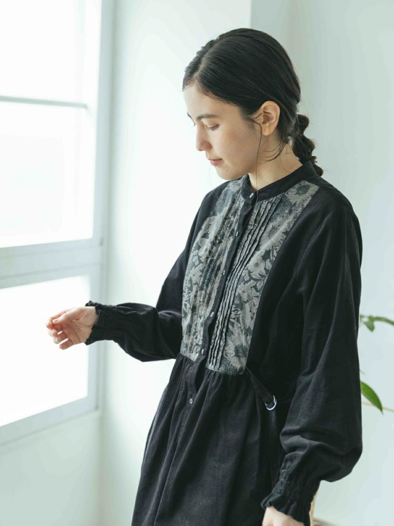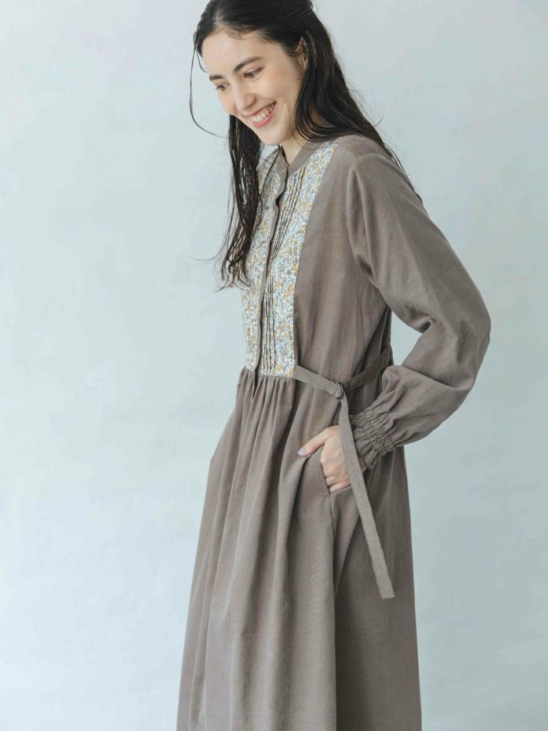 LIBERTYタナローンを合わせ華やかさをプラスしたワンピース。