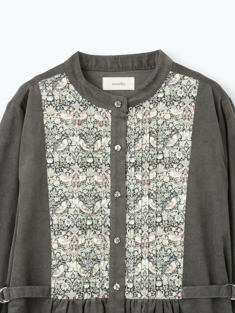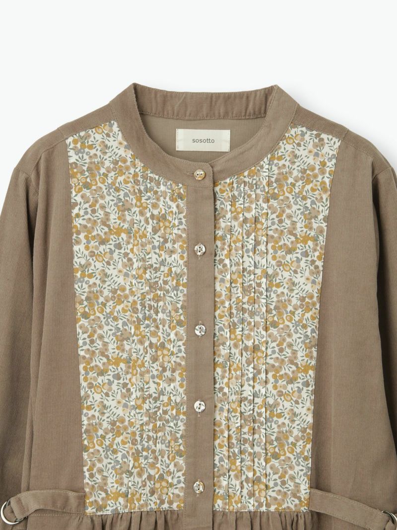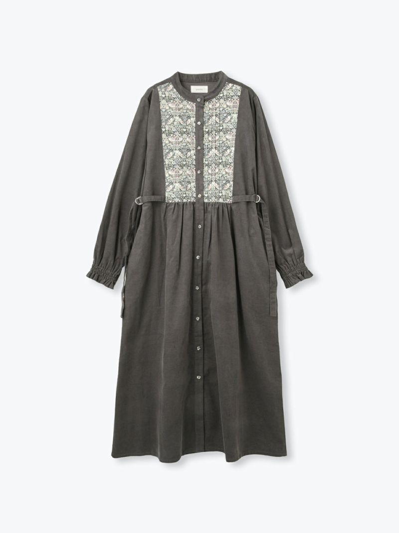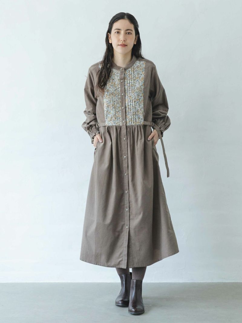 LIBERTYタナローンを合わせ華やかさをプラスしたワンピース。