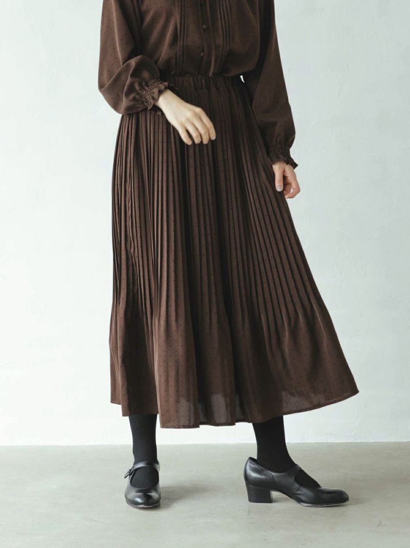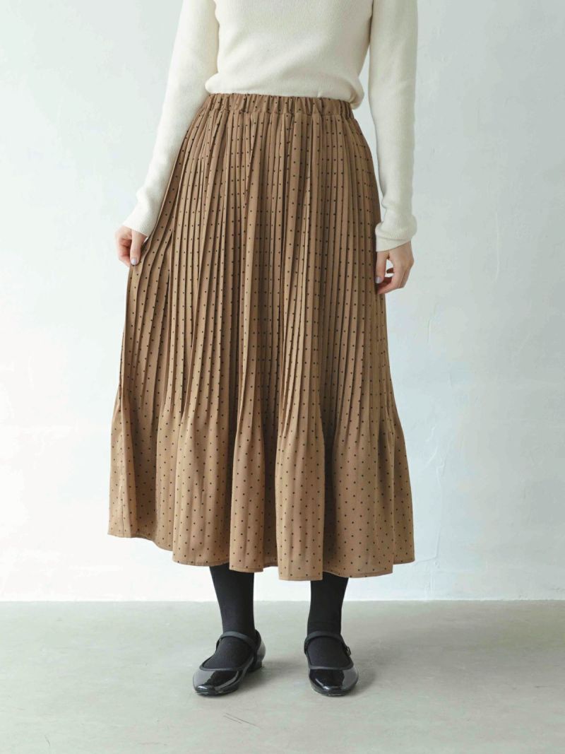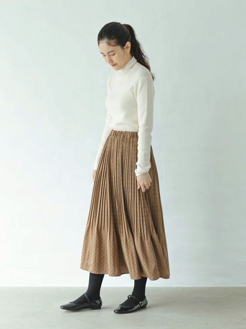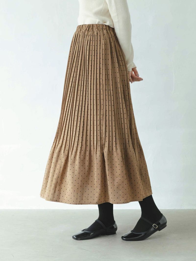 細かなプリーツの裏付き総ゴムスカートです。