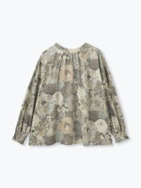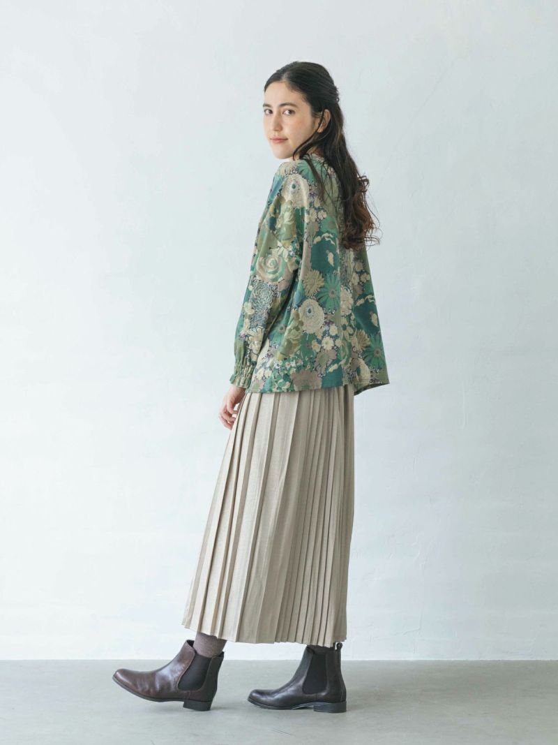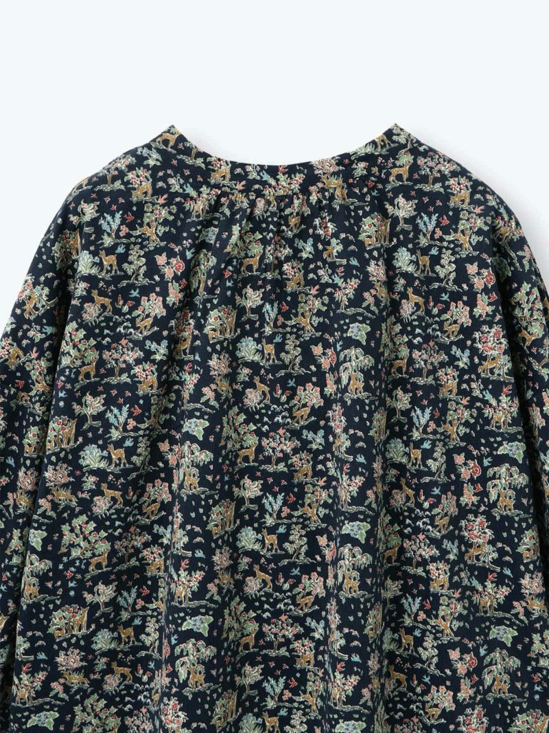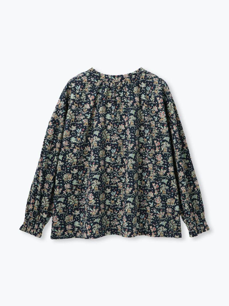 コーデュロイの程よいはり感とLIBERTYの柄がよく合うブラウスです。