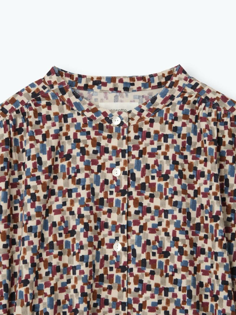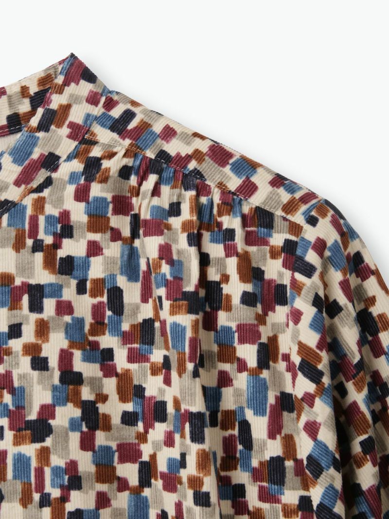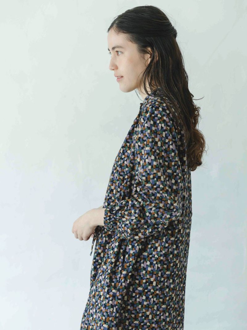 ゆったりとしたシルエットで羽織としても着合わせられます。巻物などともアレンジしやすいスタンドカラー。