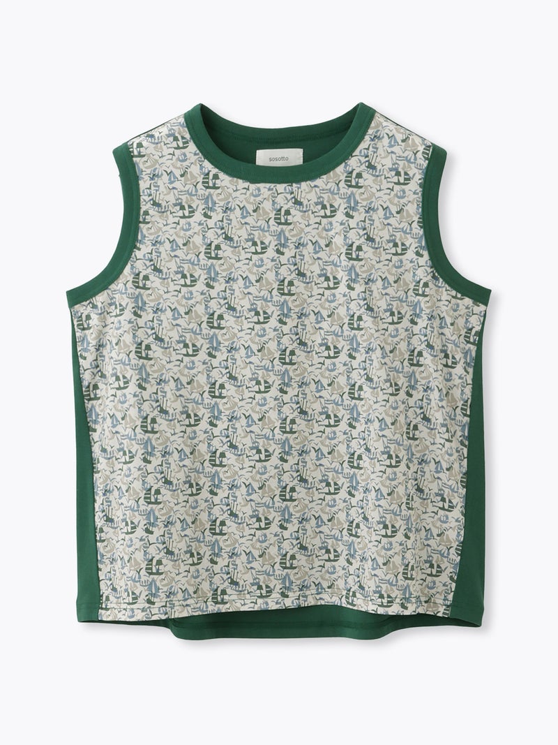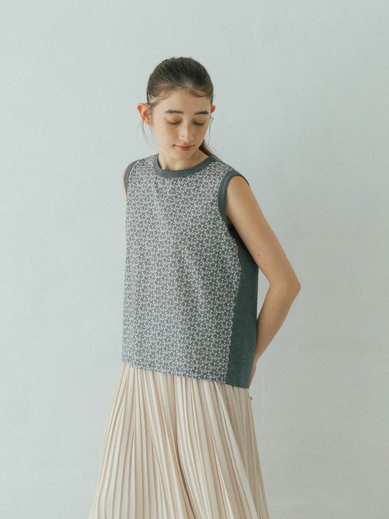 前身頃にsosotto別注タナローンで切替えたノースリーブ。