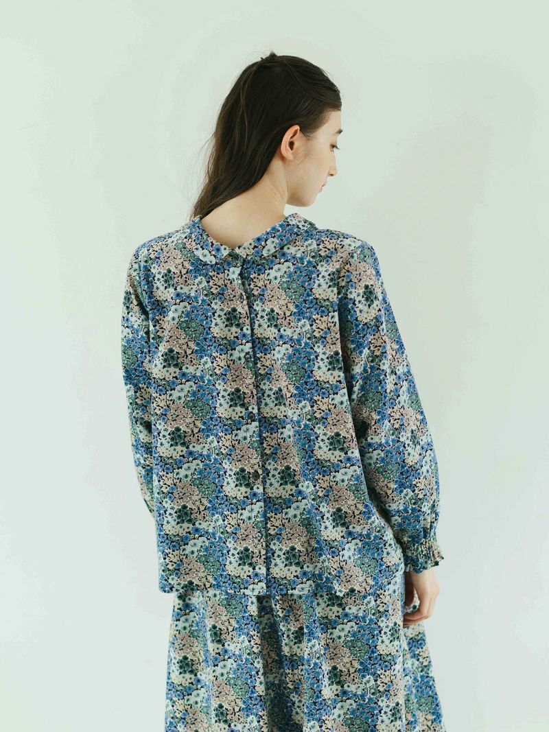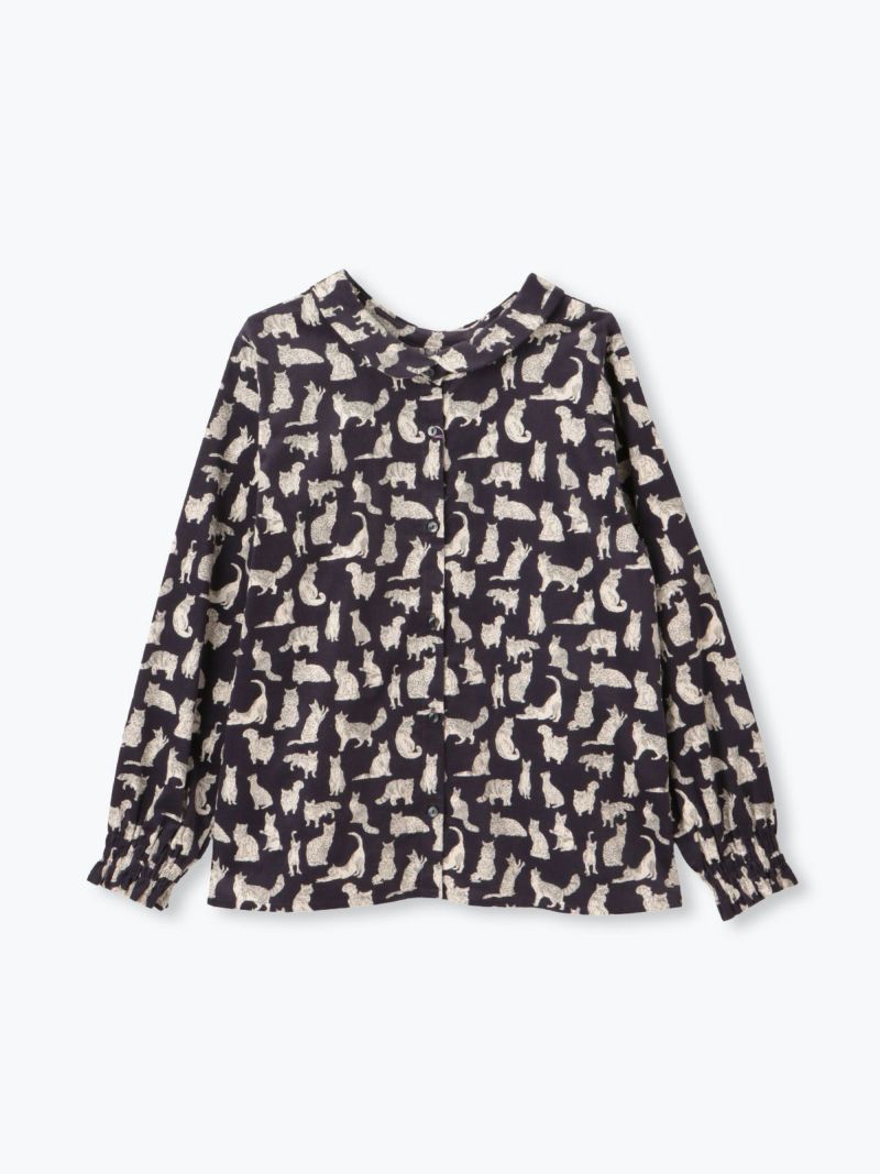 シャーリングの衿と袖が人気の定番前後2WAYブラウスを