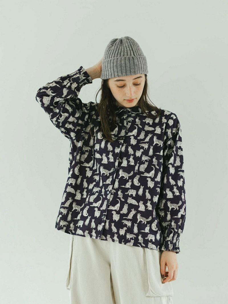 袖口のシャーリングとゆったりとしたシルエットはそのままに