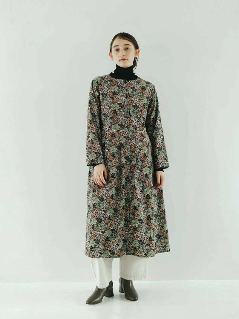 重ね着にも羽織にも便利に着まわせるワンピースです。