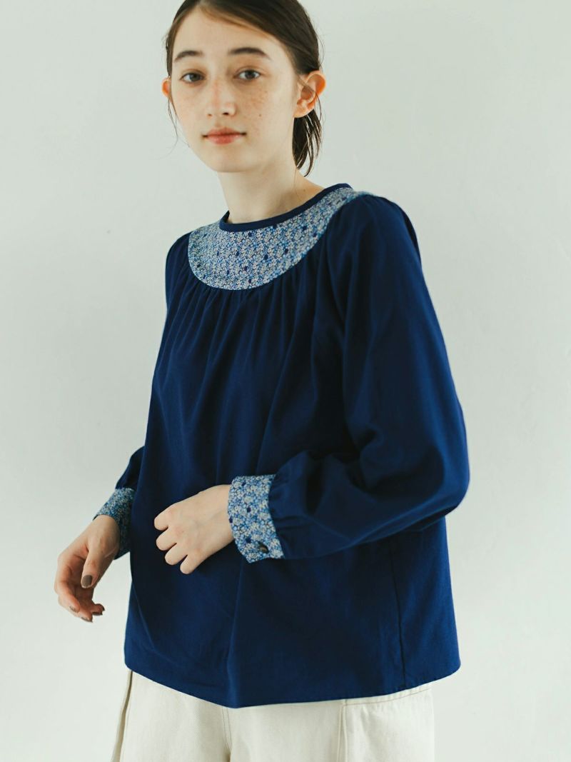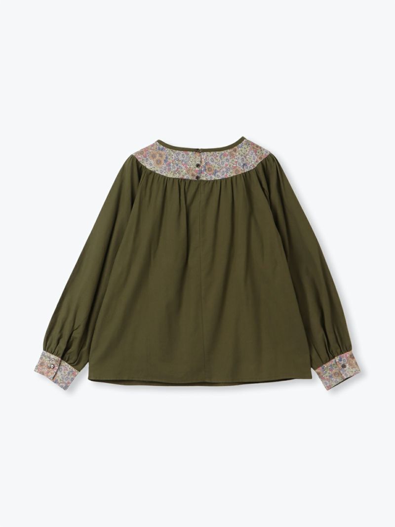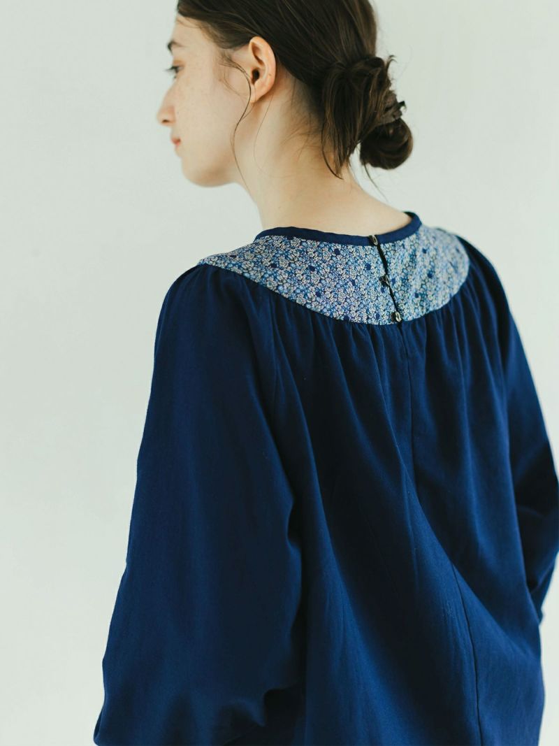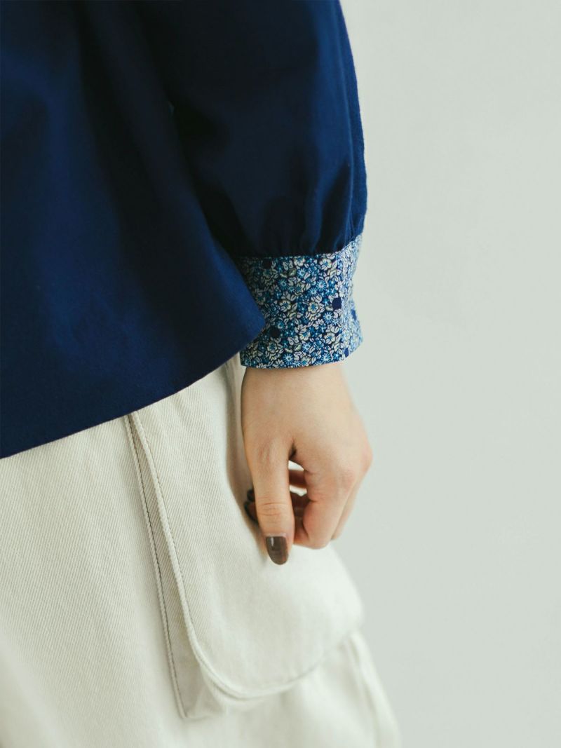 カフスとヨーク部分のリバティ柄が羽織を着た際にも