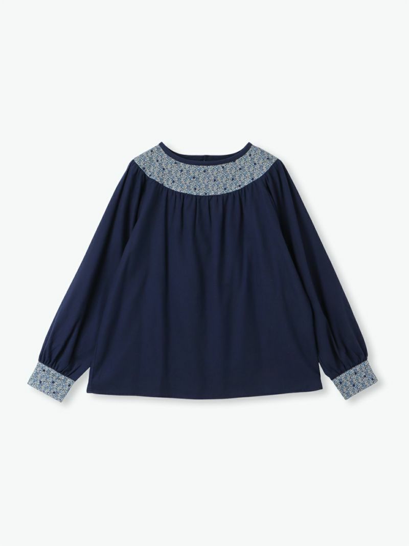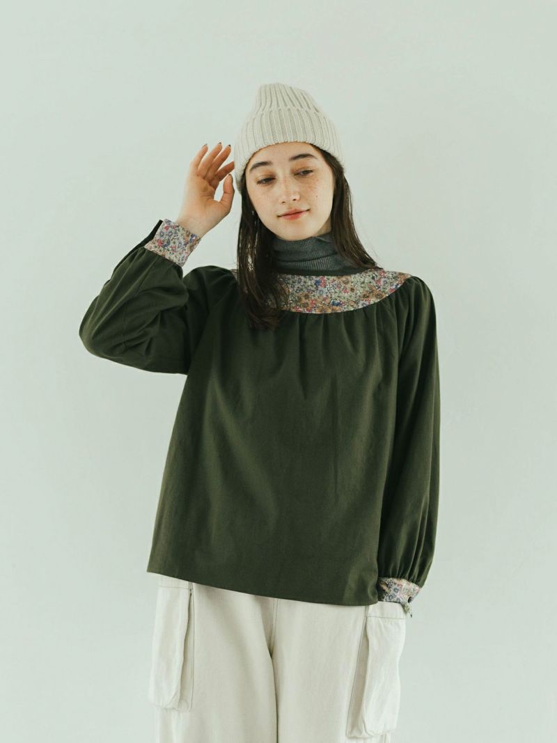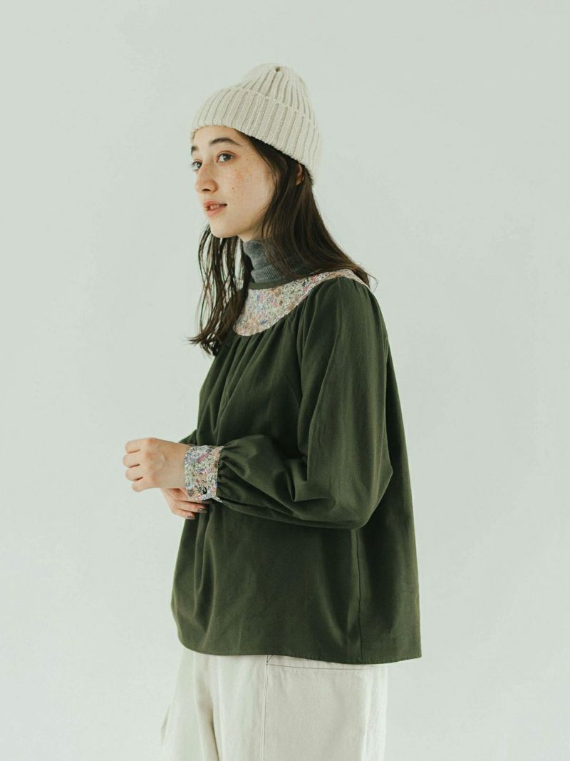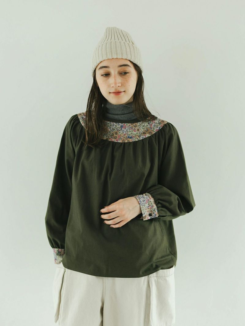 カフスとヨーク部分のリバティ柄が羽織を着た際にも