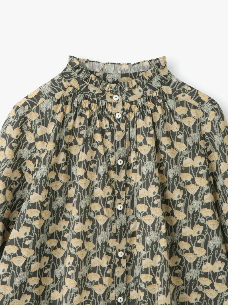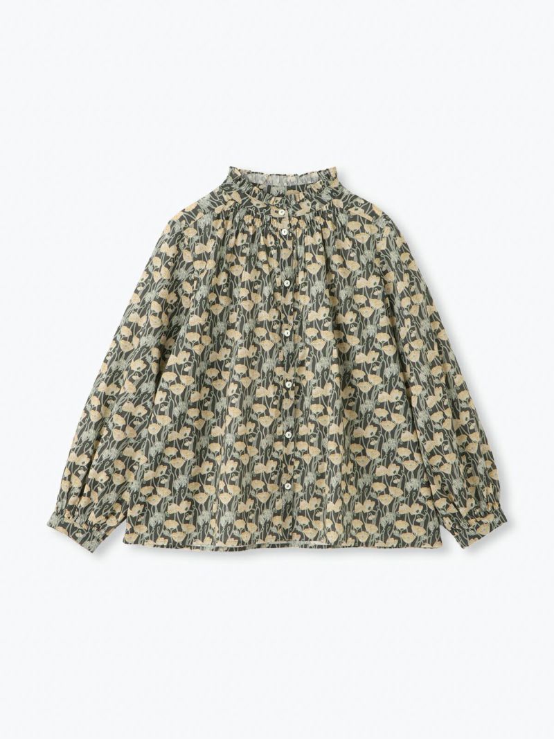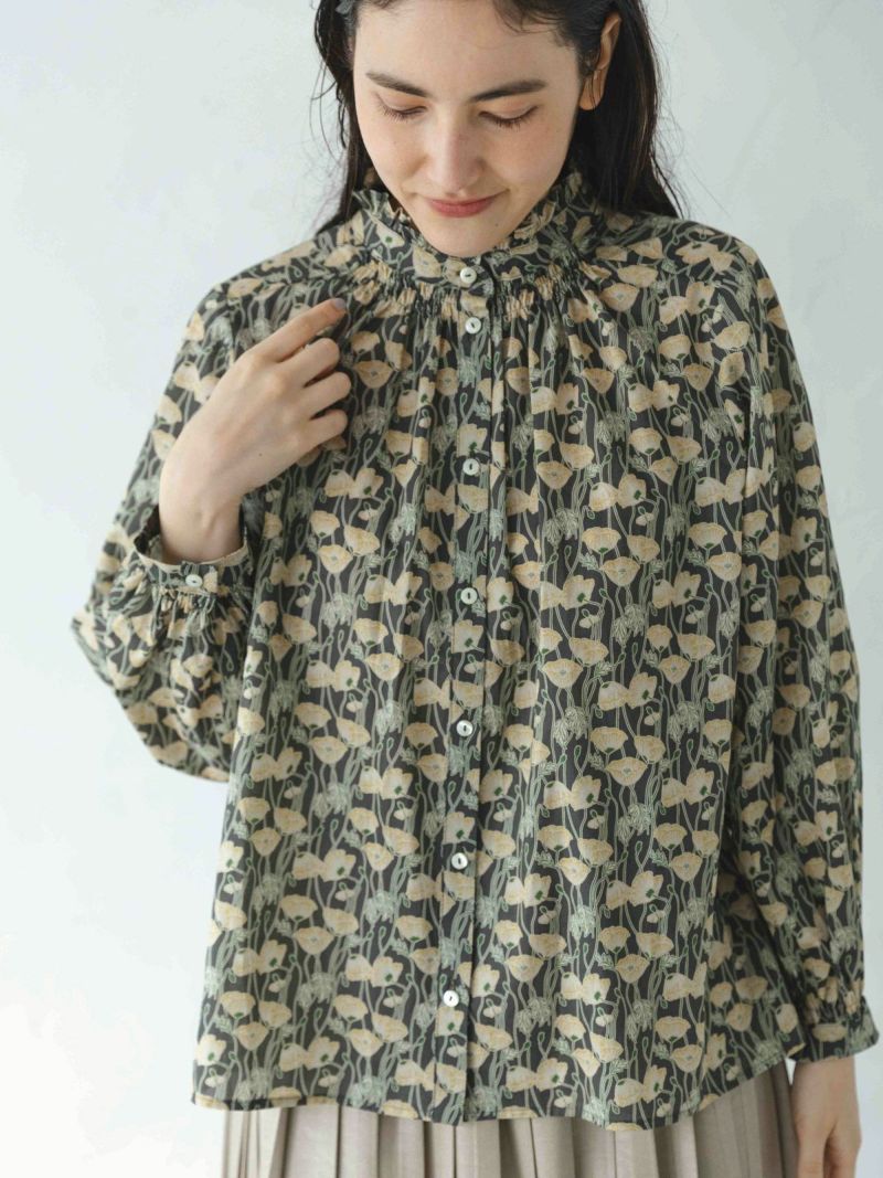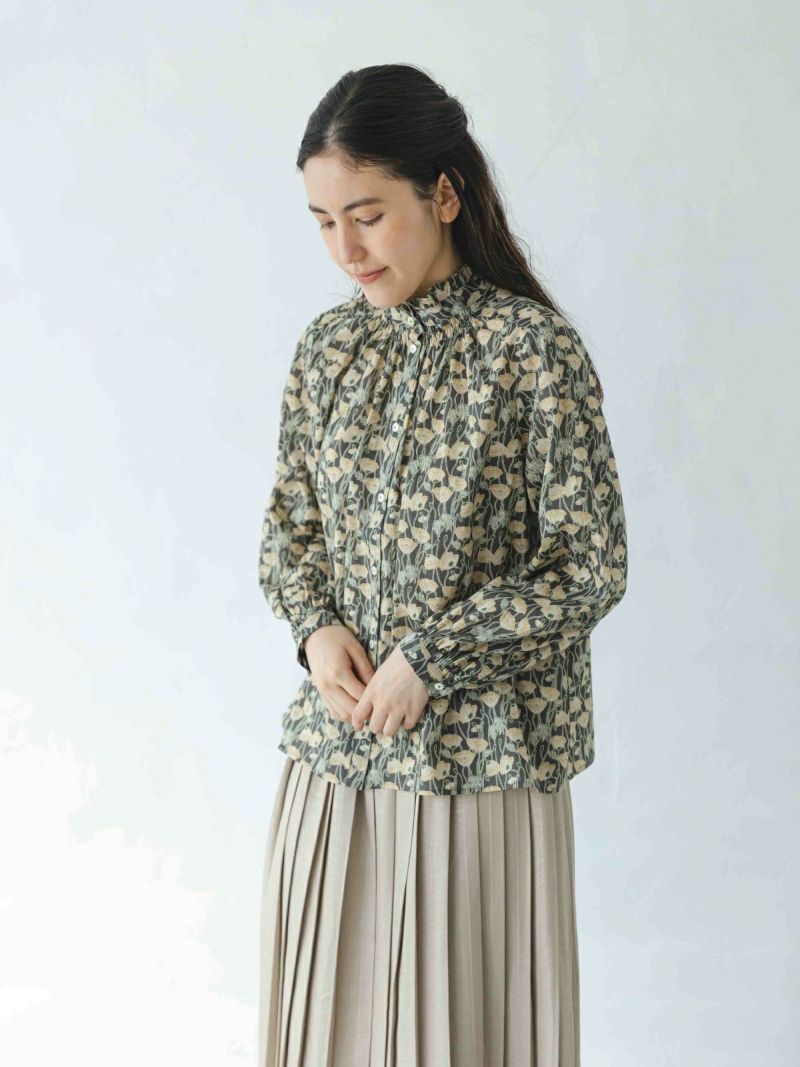 袖シャーリングがクラシカルな女性らしさを演出するブラウスです。