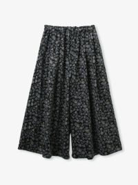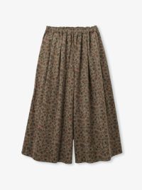 スカートのようにも見えるワイドなシルエットでベーシックな無地のニットとの合わせにもポイントとなる柄パンツです。