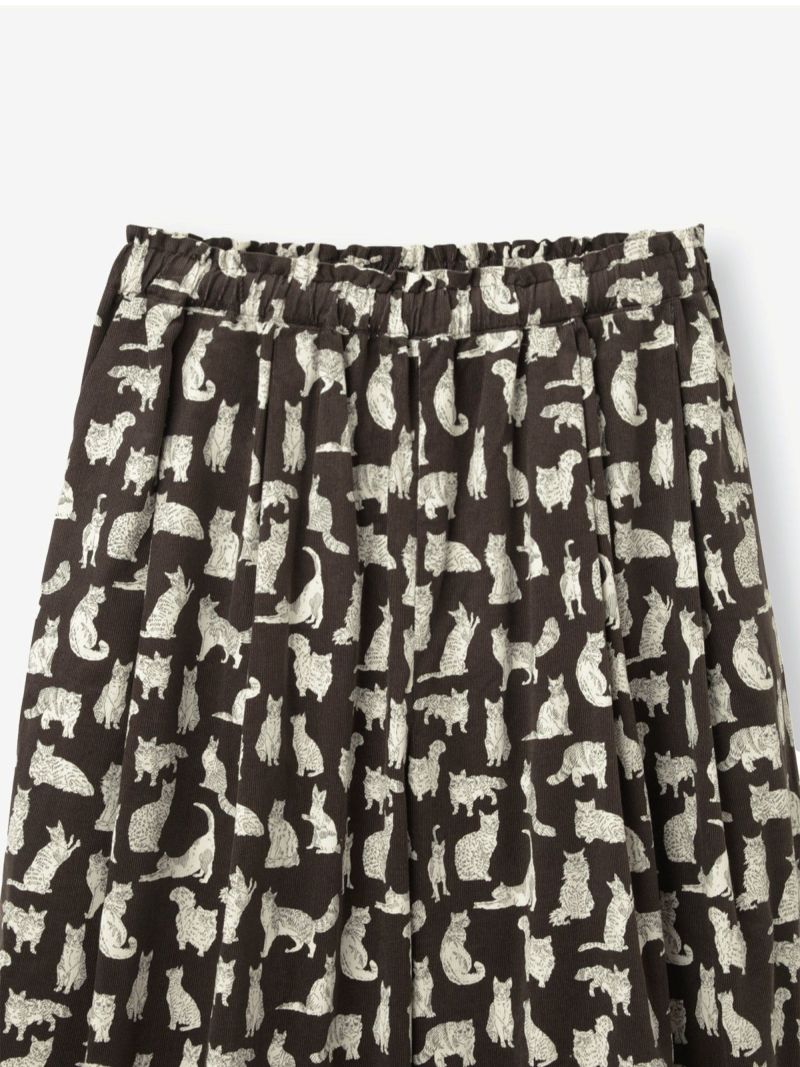 トップスを選ばず、同柄のブラウスとのセットアップコーデもお勧めです。
