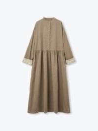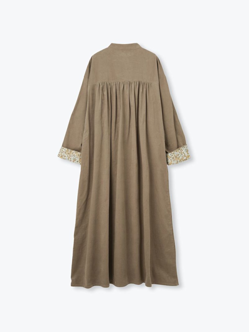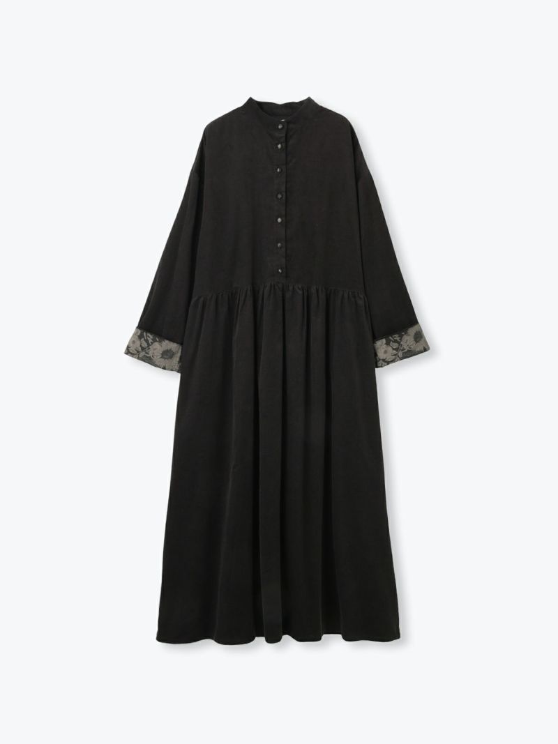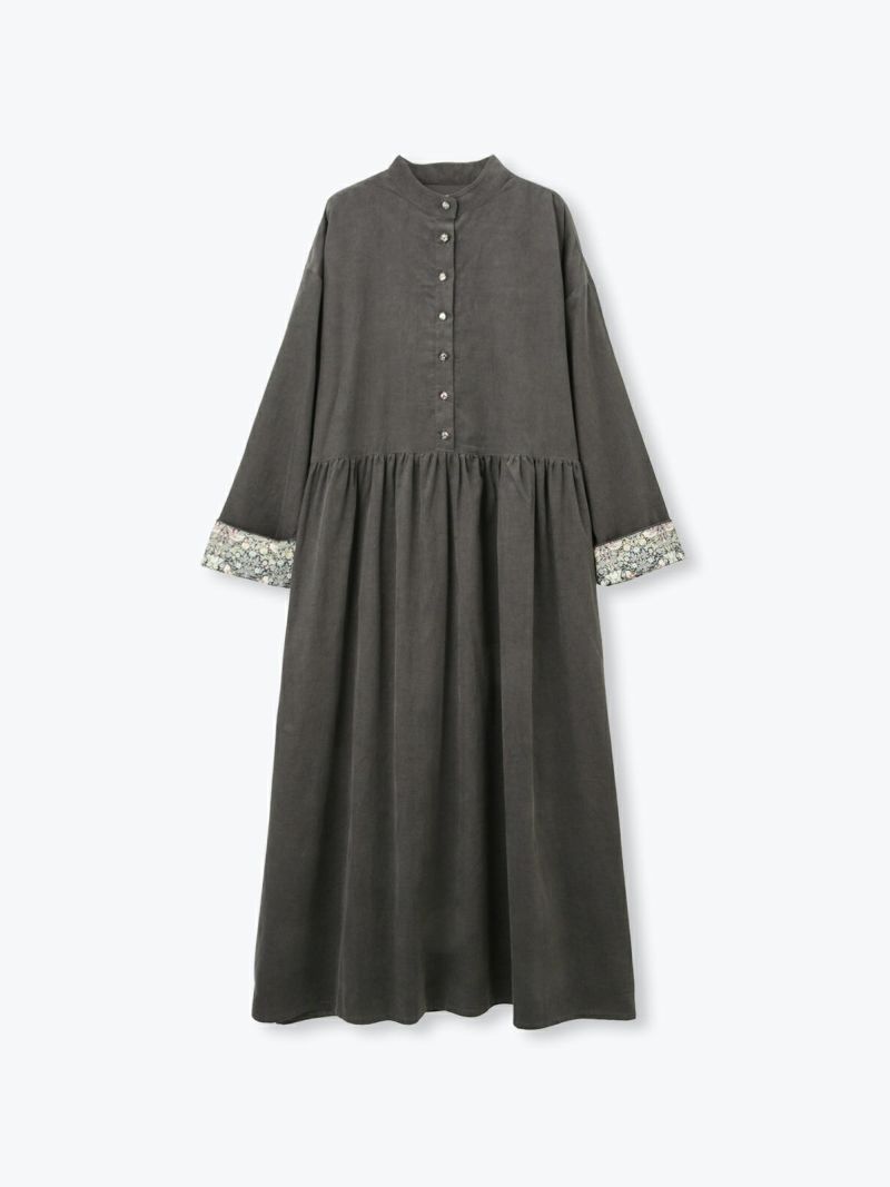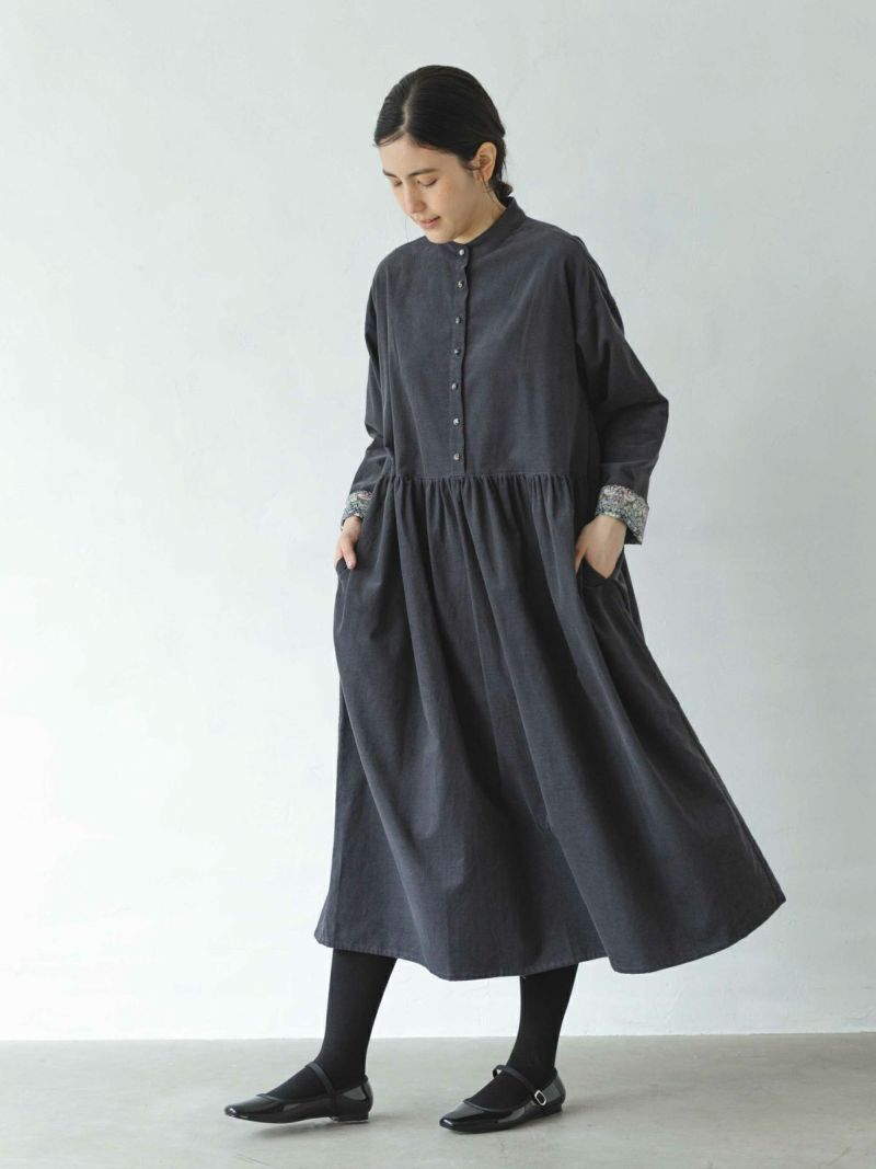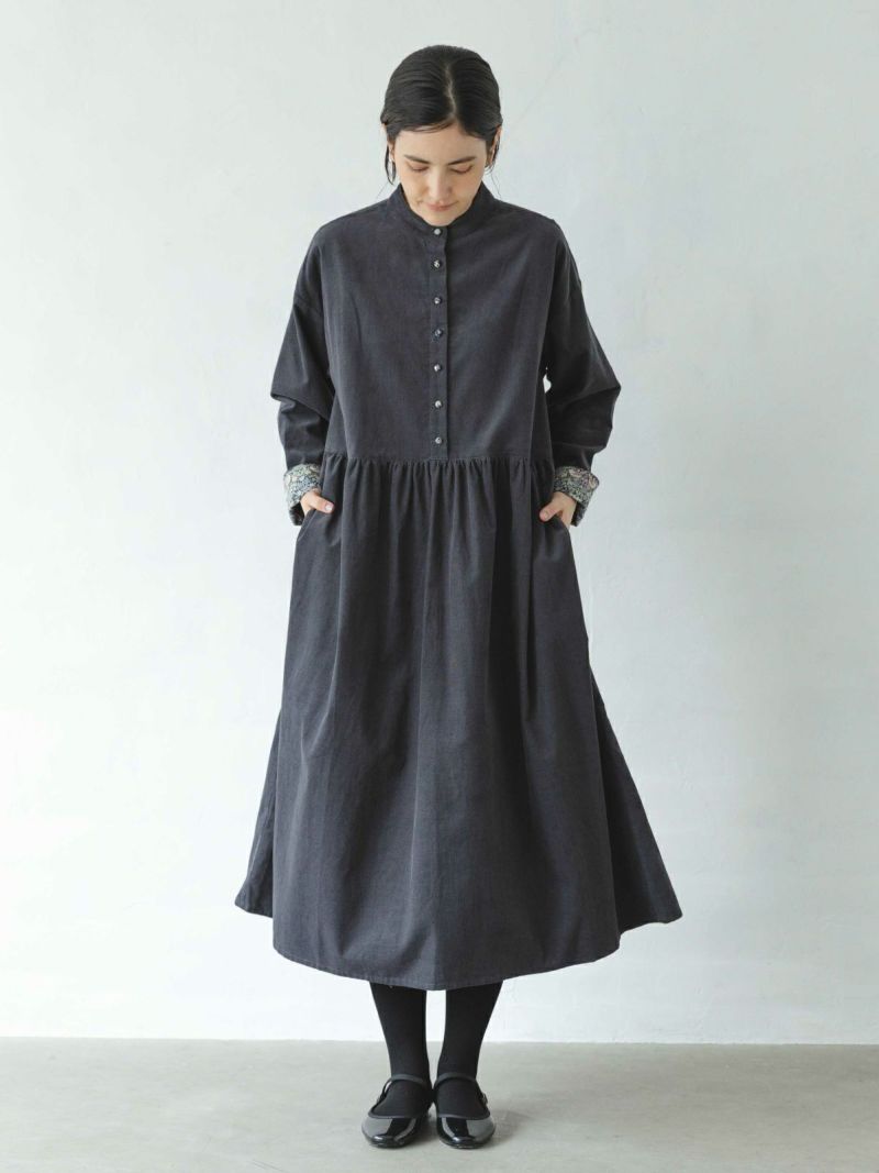 着あわせやすいスタンドカラーでウエストの切替からギャザーを入れた