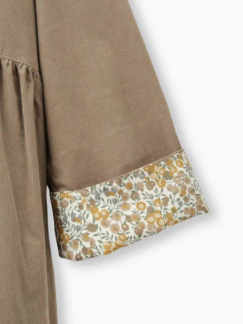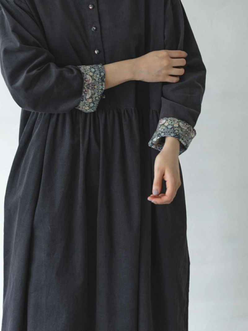 くるみボタン、袖口裏に合わせたLIBERTYPRINTが、