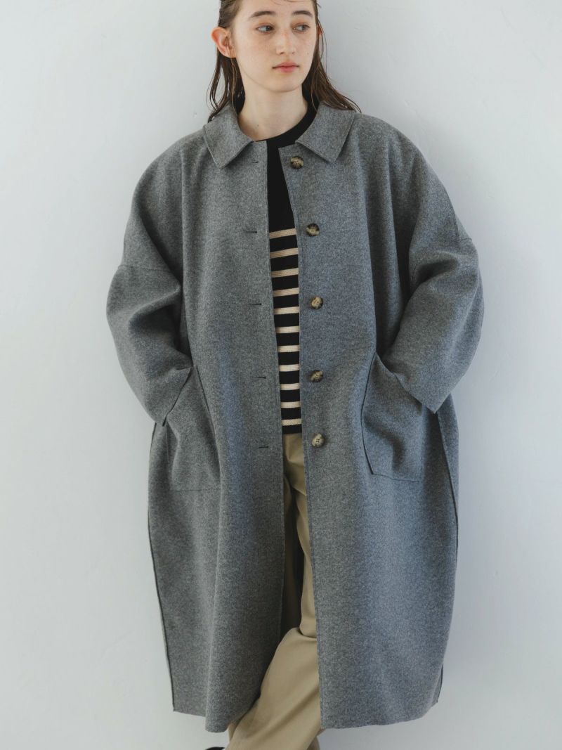 ダブルフェイス生地をたっぷりと使いステンカラーの