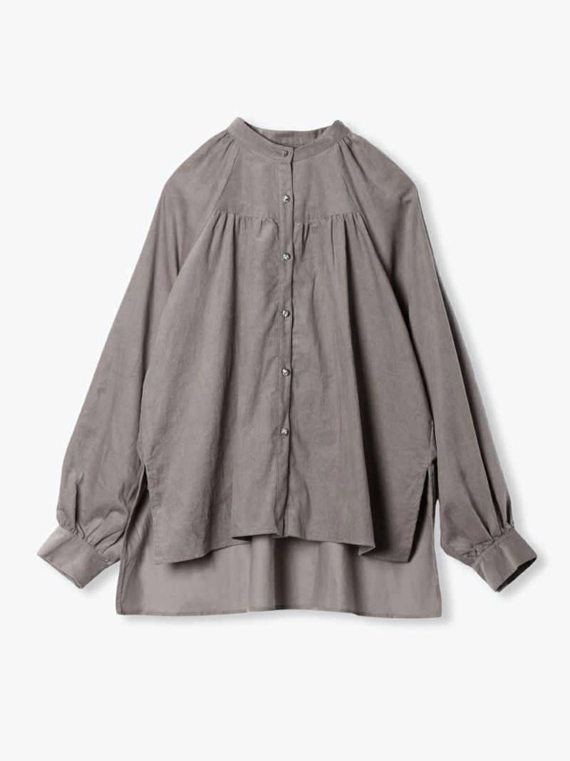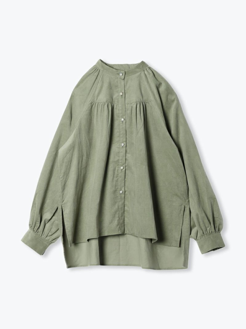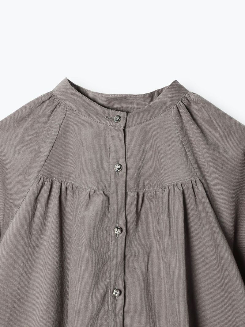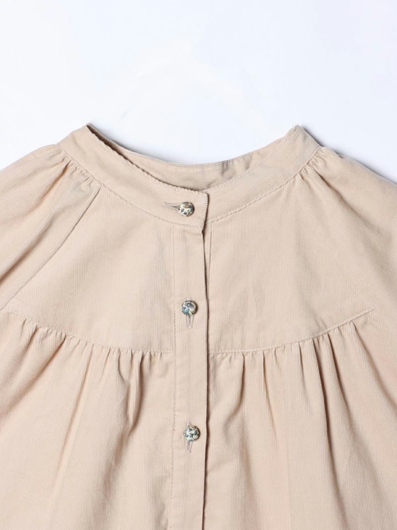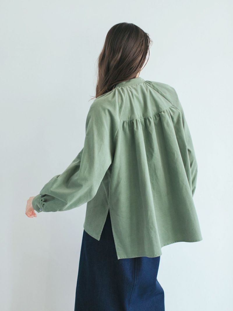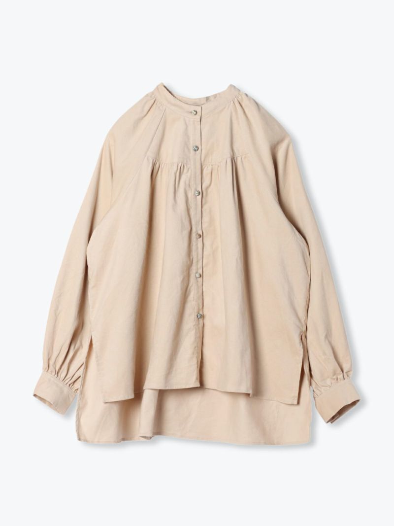 前後にラウンドしたヨークにギャザーを施し、