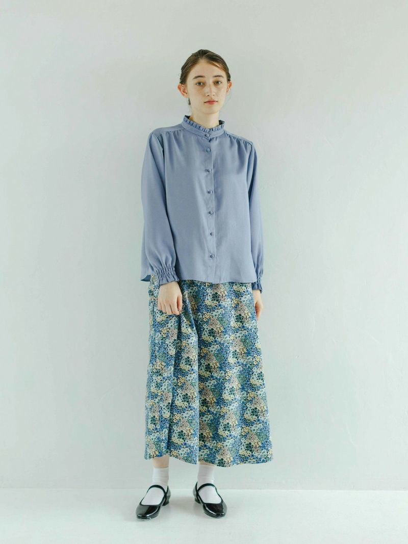 前後にいれたギャザーとシャーリングゴムの袖口、