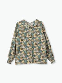 シャーリングの衿と袖が人気の定番前後2WAYブラウスを