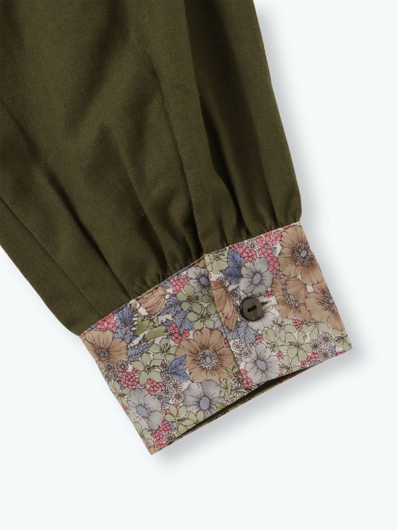 カフスとヨーク部分のリバティ柄が羽織を着た際にも