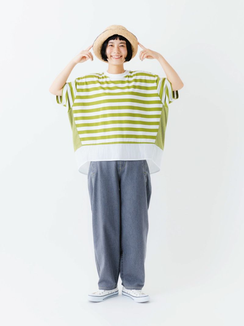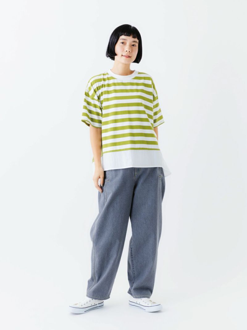 裾後ろカーブのゆったりとしたワイドシルエットです。