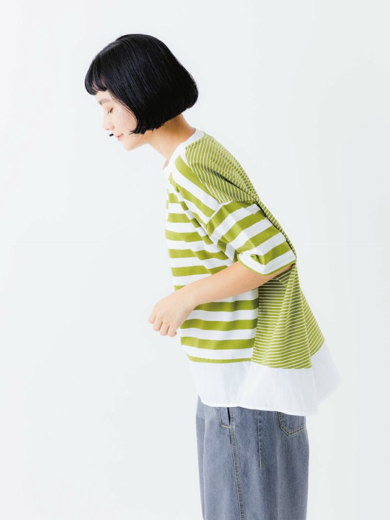 開きの少ないベーシックなクルーネックのボーダーカットソーです。