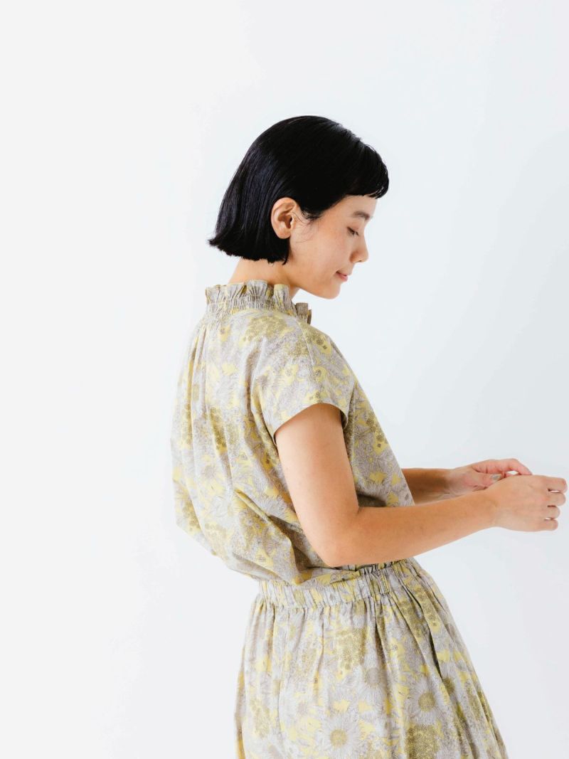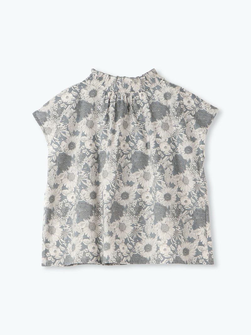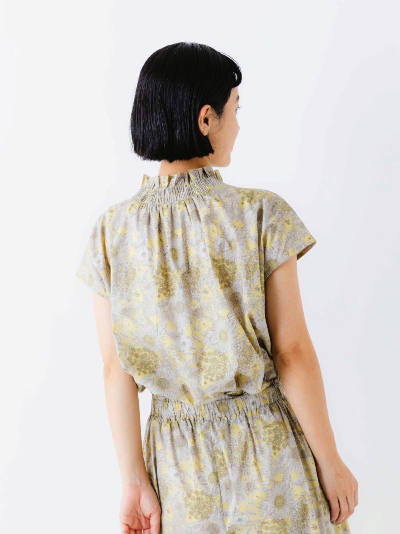 毎年人気のLIBERTYPRINTタナローンのシャーリングカラーフレンチスリーブ。