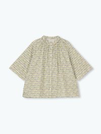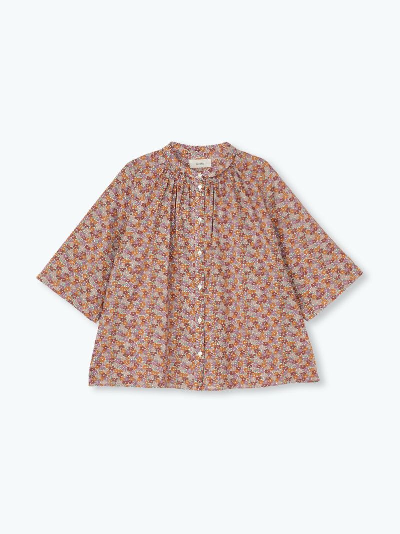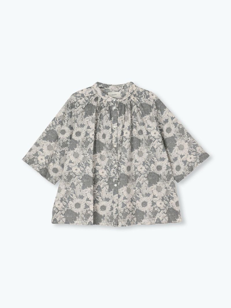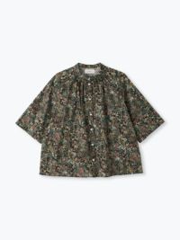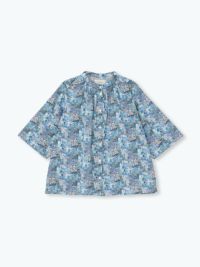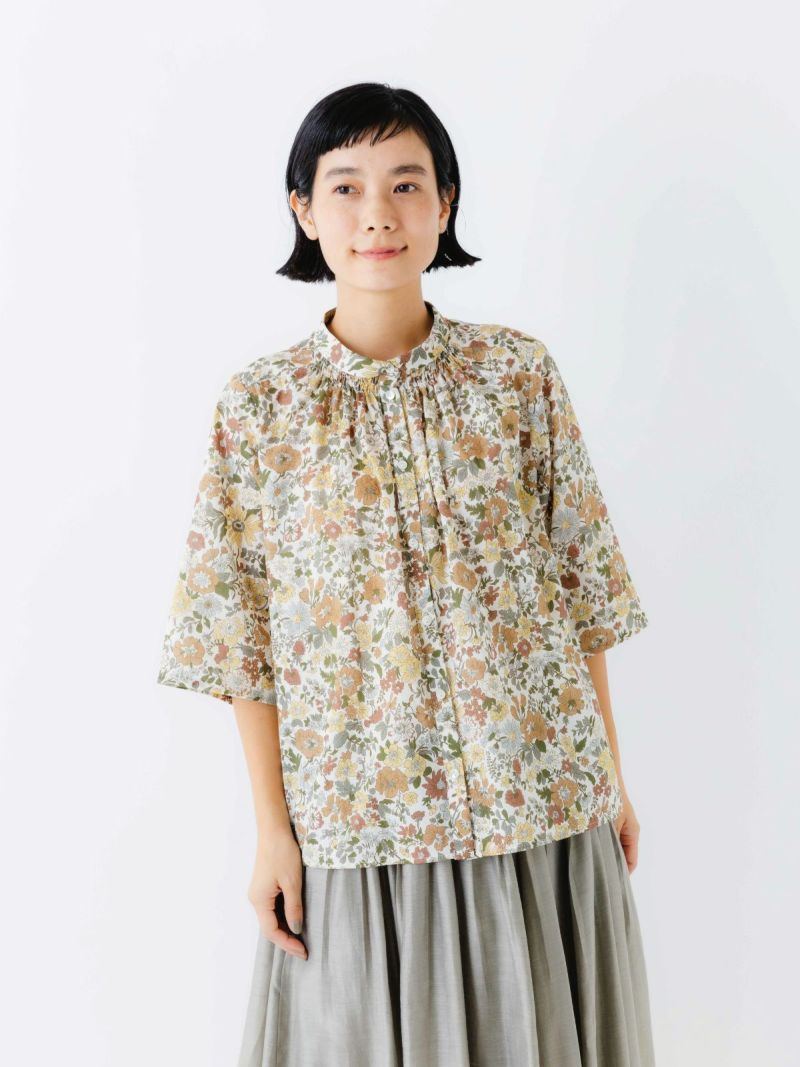 LIBERTYPRINTチビ丸衿ゴムシャーリングブラウス6分袖