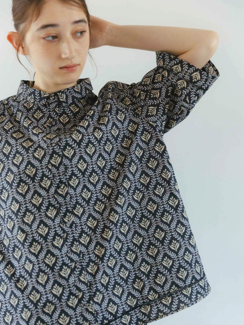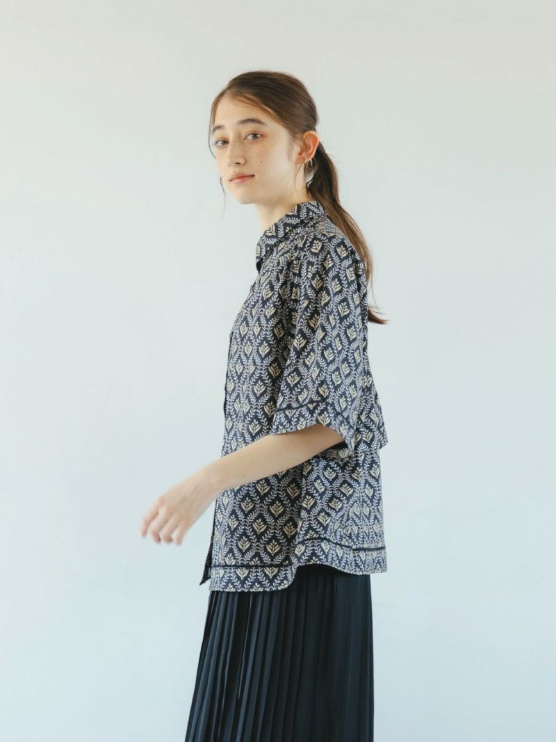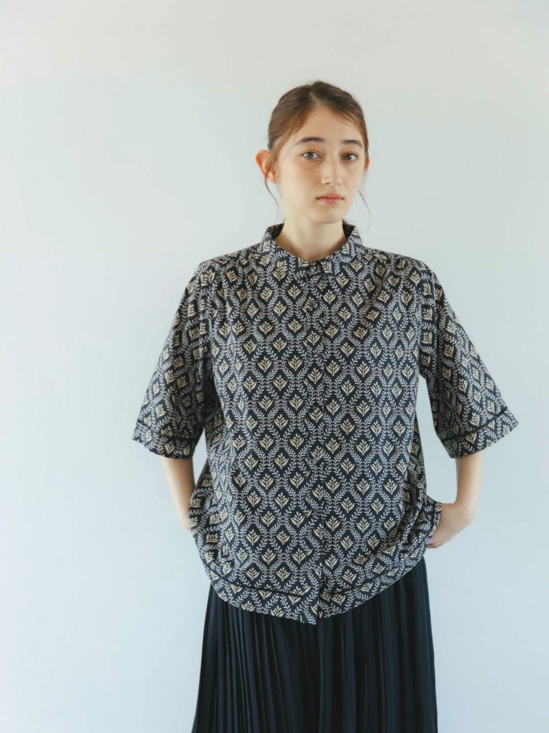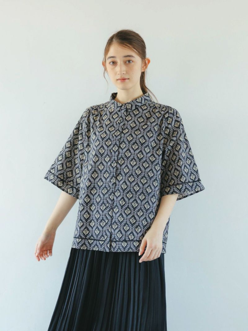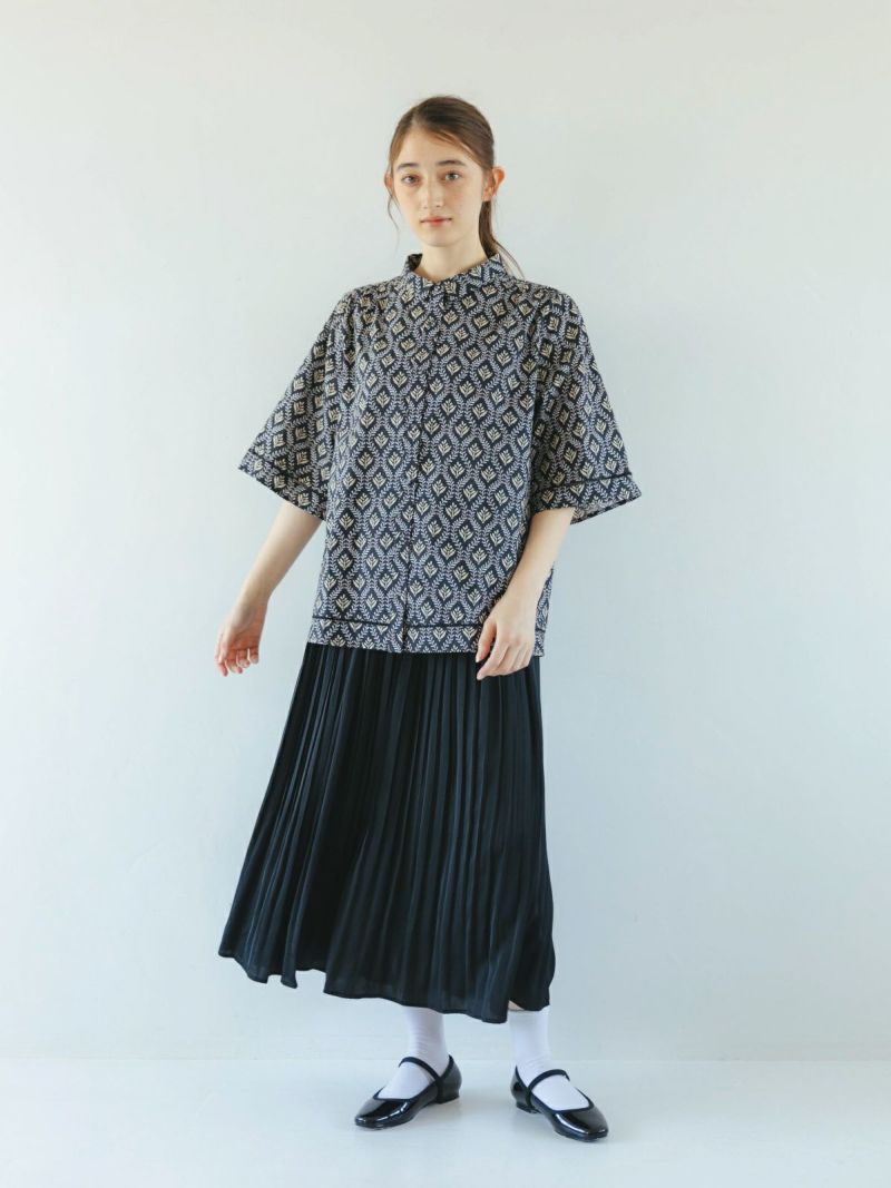 パンツにもスカートにもコーディネイトしやすい衿付きブラウスです。