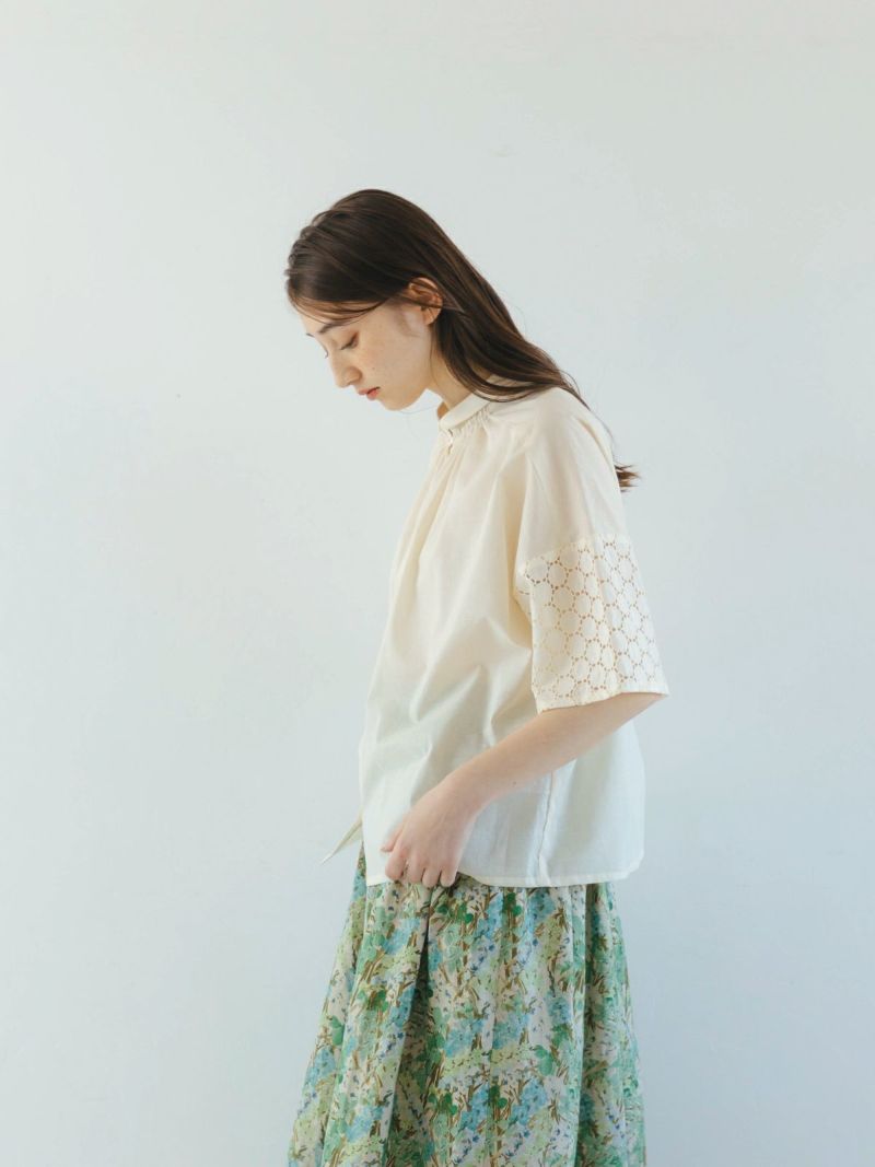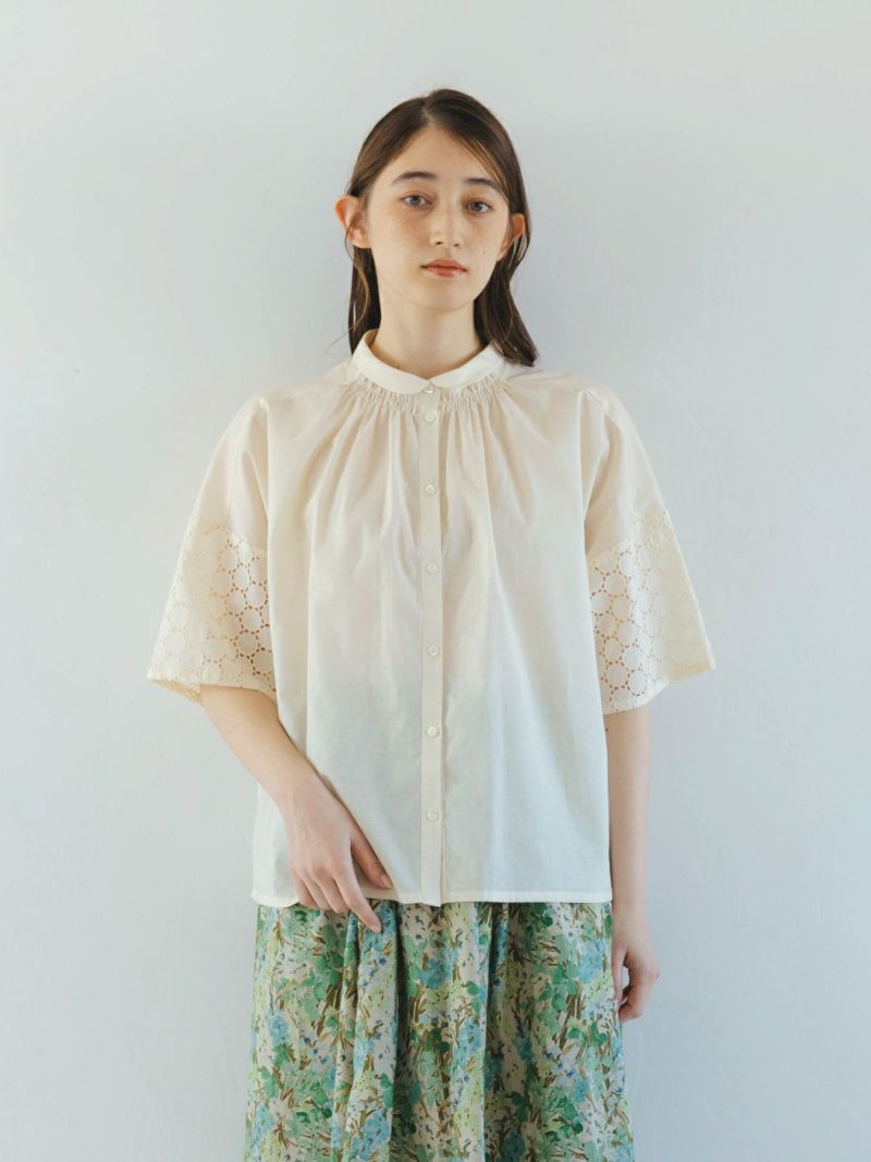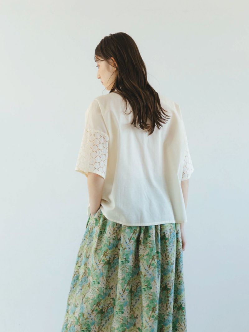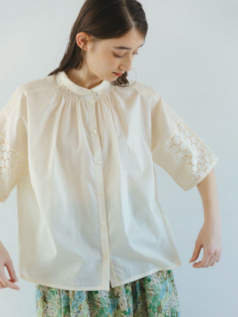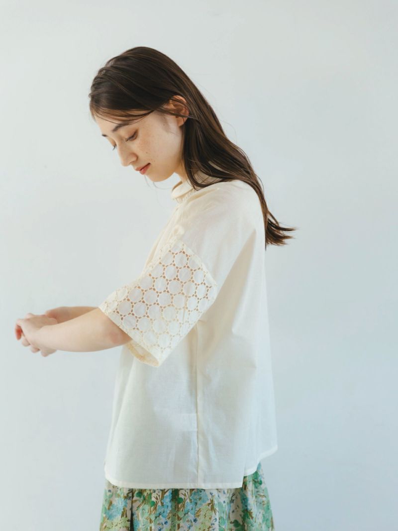 サークルレースの5分袖が涼し気な夏のブラウスです。