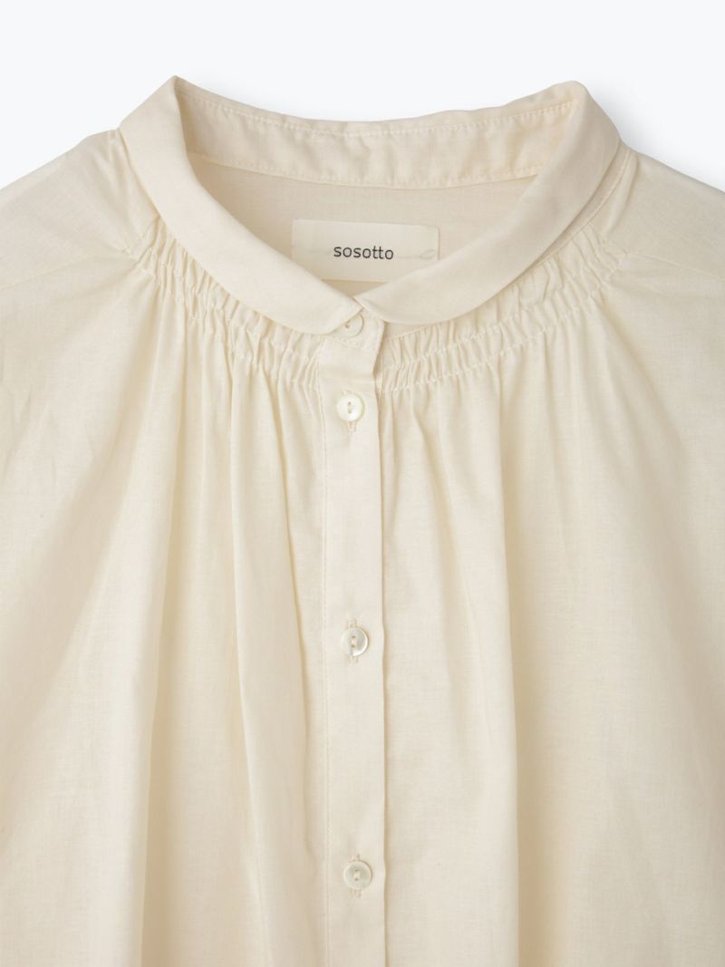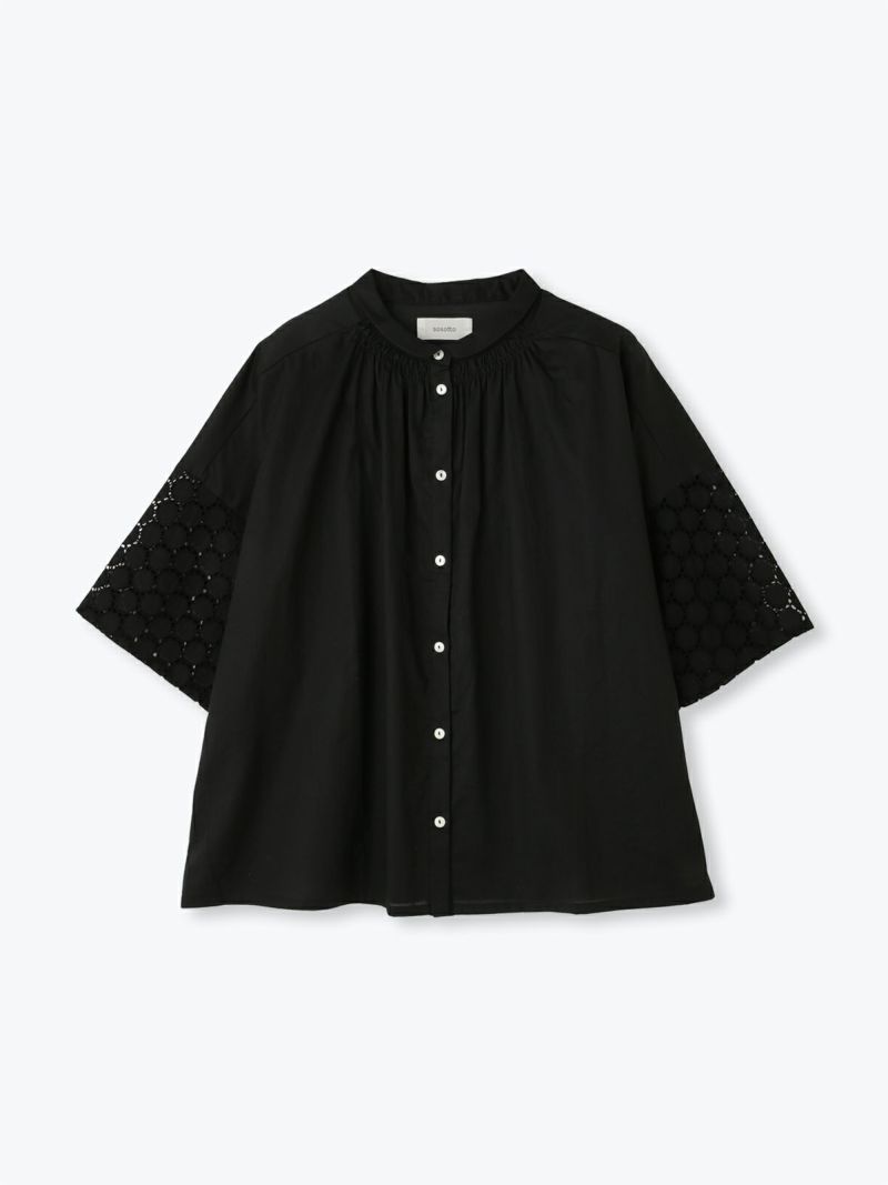 sosotto(ソソット) 【ラスト1点】60ローンチビ衿シャーリングレース袖ブラウス5分袖