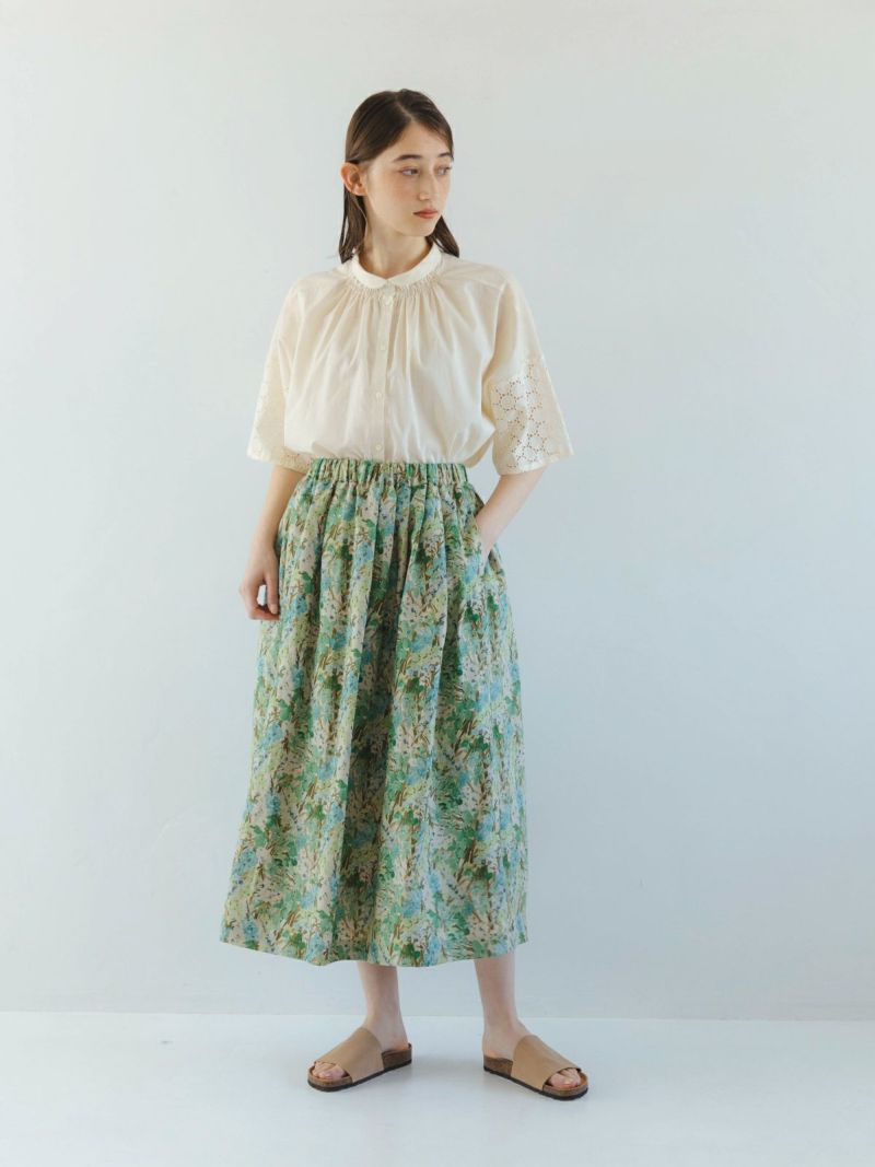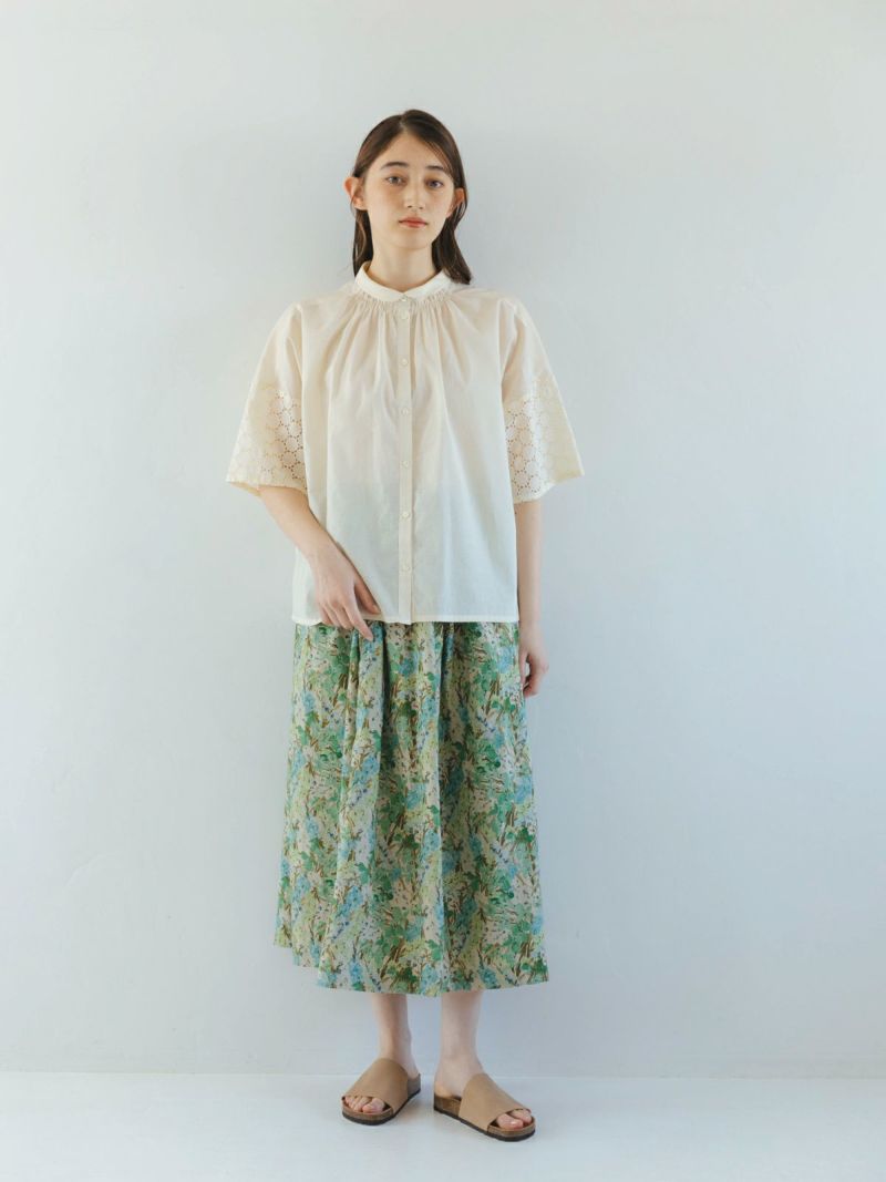 シャーリングから広がるギャザーが絶妙なバランスのシルエットです。